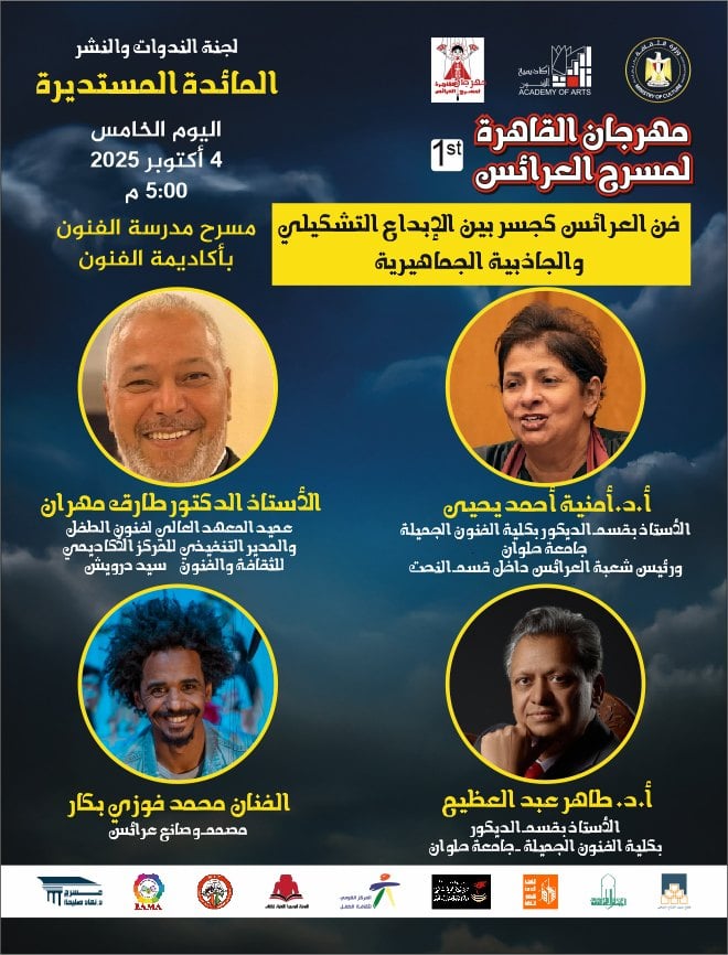 الجدير بالذكر، ان فعاليات اليوم الثالث 4 أكتوبر ستبدأ بالفرع الثاني لأكاديمية الفنون الساعة الخامسة مساء لمناقشة المحور الخامس تحت عنوان فن العرائس كجسر بين الابداع التشكيلي والجاذبية الجماهيرية وذلك ضمن سلسلة الموائد المستديرة الخاصة بالمهرجان بمسرح مدرسة الفنون، ثم يتبعها مجموعة من العروض المستقلة: عرض انتاج دمية دول بعنوان «خيال» سيعرض ثلاث مرات في: الساعة 5.45 و 6.30 بمسرح الفنون 2 ثم الساعة 7.15 بمسرح نهاد صليحة، وبالتوازي معه سيعرض عرض من انتاج عمرو صلاح بعنوان «ثلاثة عروض فردية» الساعة السادسة بمسرح مدرسة الفنون 2 ، وأخيرا عرض من انتاج فرقة دارك للعرائس التابعة لمؤسسة دارك للتنمية الثقافية والفنية بعنوان «متوالية متلازمة سليم» الساعة 6.45 مساء بمدرسة الفنون 2.
