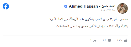 وأوضح أحمد حسن، عبر منشور على صفحته الرسمية بموقع "فيسبوك"، أن مصدرًا داخل اتحاد الكرة أكد له عدم وجود أي شكاوى رسمية مقدمة من لاعبي الزمالك، مشيرًا إلى أن كل ما تم تداوله عبر وسائل الإعلام هو مجرد مبالغة في نقل الأحداث.