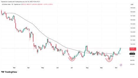 من العوامل التي قد تشكل عائقًا قصير المدى أمام الذهب هو قوة الدولار الأمريكي؛ فارتفاع الدولار قد يحد من مكاسب الذهب حتى وإن ظل السياق الاقتصادي العام داعمًا له.