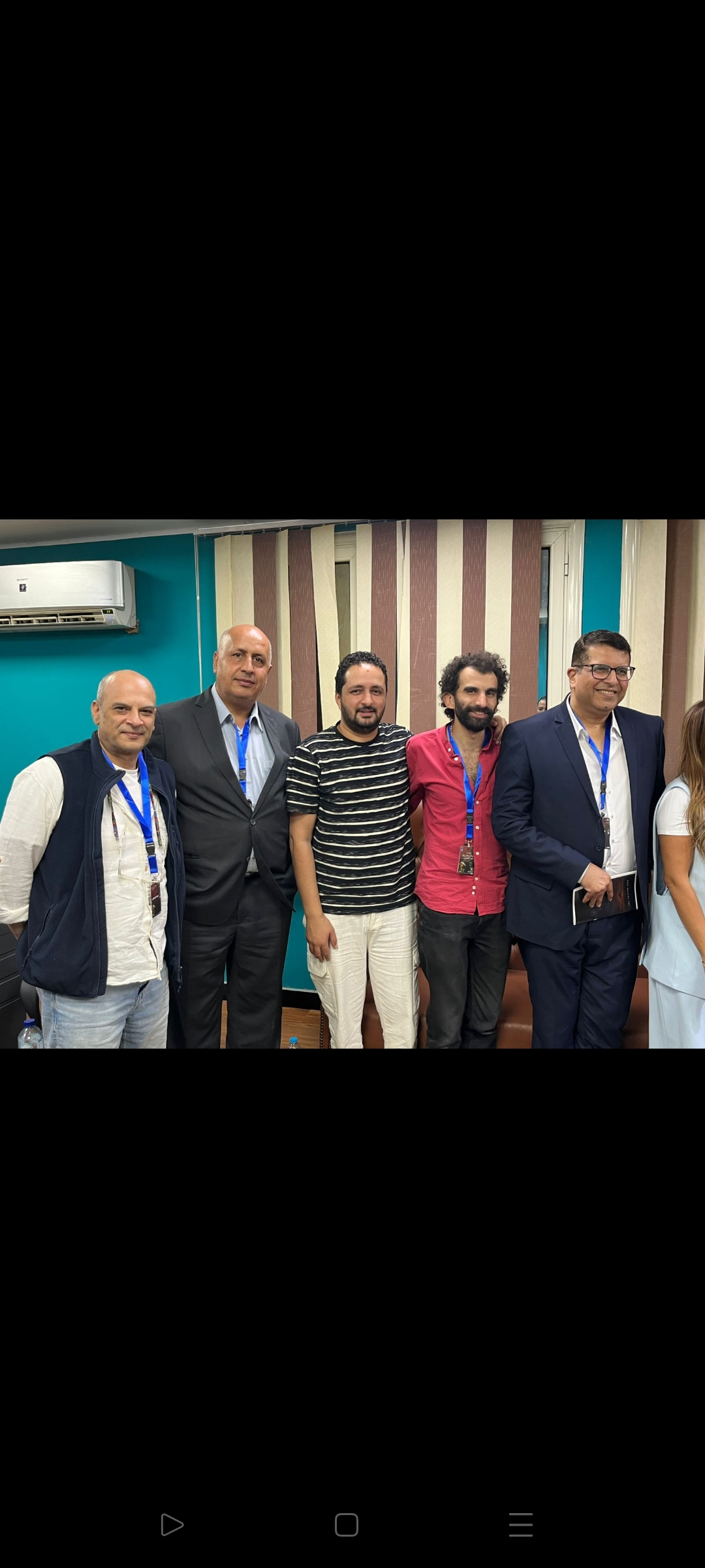 لجنة تحكيم مهرجان نقابة المهن التمثيلية المسرحي يتوسطهم الدكتور أشرف زكي قبل متابعة العروض