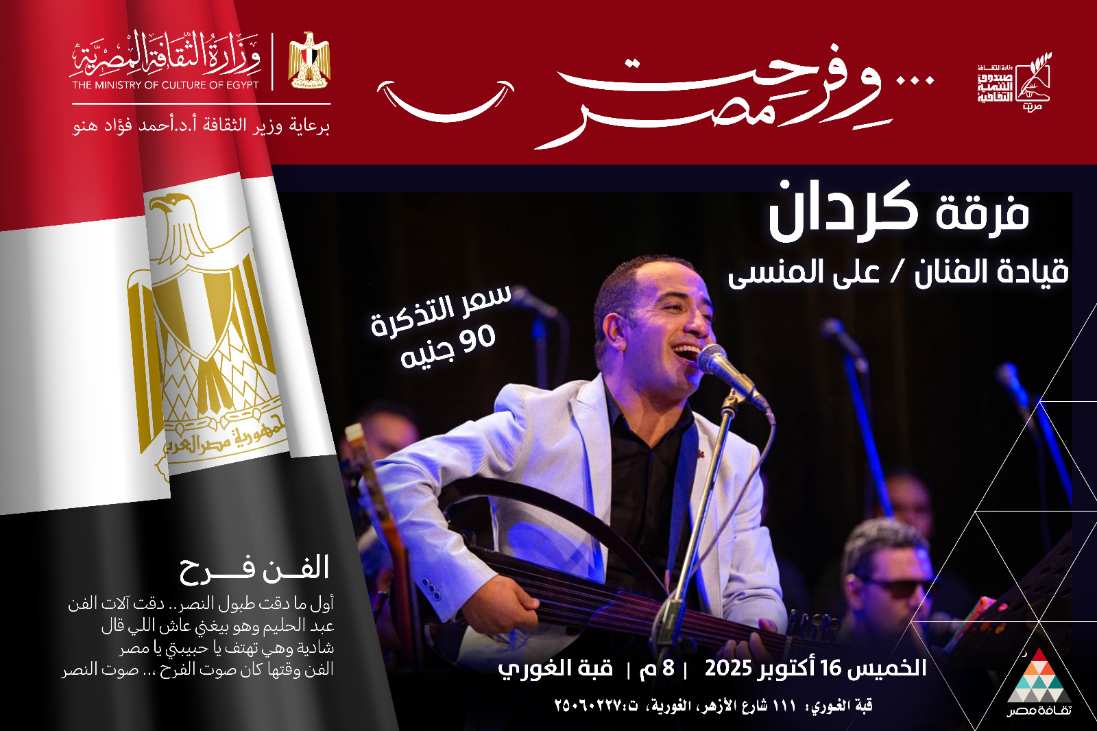 يأتي هذا الحفل امتدادًا لمسيرة مركز إبداع قبة الغوري في دعم الفنون الراقية وإحياء التراث المصري الأصيل، من خلال تقديم نماذج فنية تعكس ثراء وتنوع الهوية الثقافية المصرية.