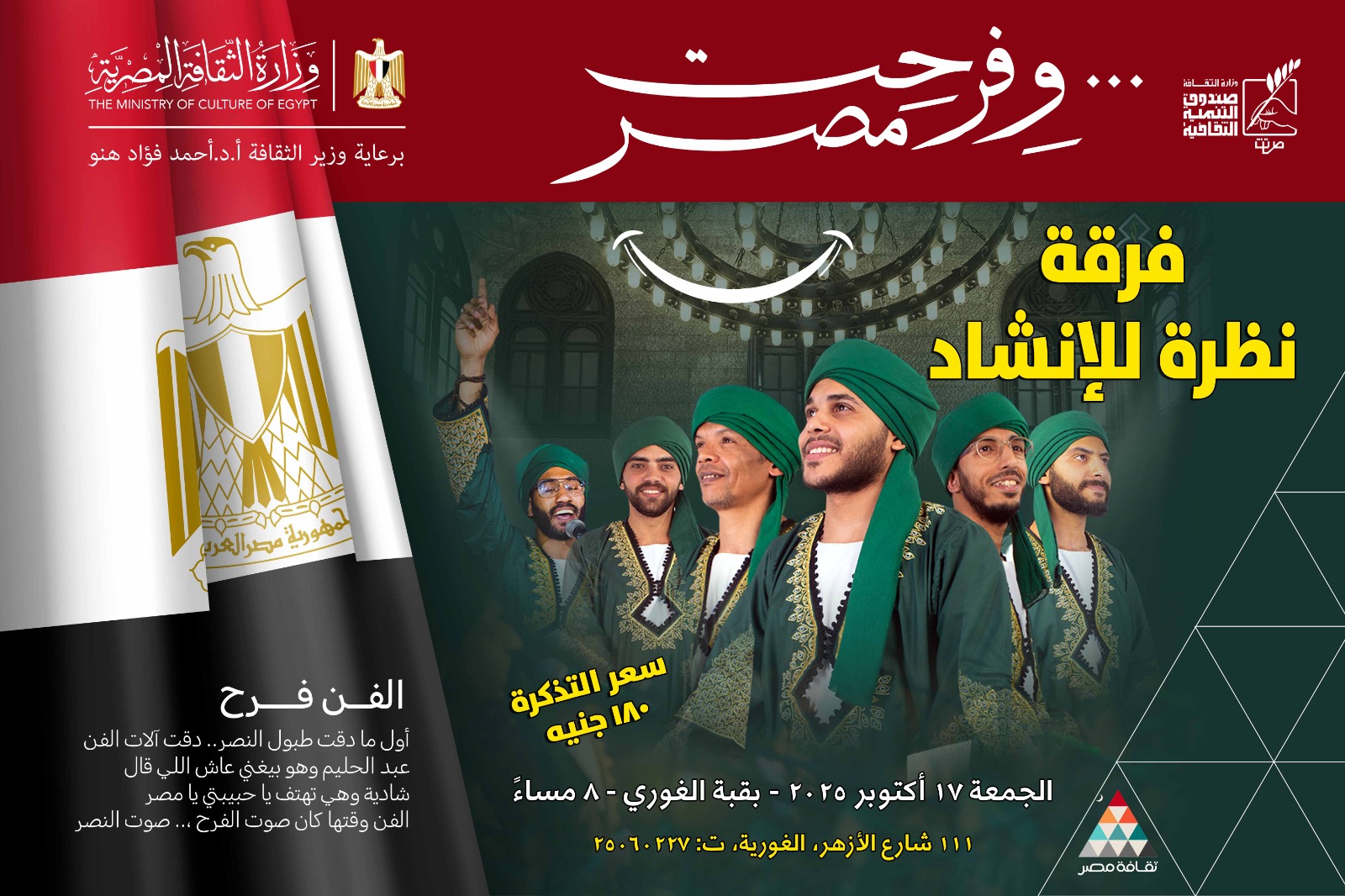 تأتي هذه الأمسية ضمن سلسلة الحفلات التي ينظمها صندوق التنمية الثقافية بهدف دعم الفنون التراثية وإحياء روح الإنشاد الديني الأصيل، الذي يجمع بين جمال الصوت وصدق المعنى وعمق الرسالة الروحية، وتعد فرقة "نظرة" واحدة من الفرق الصاعدة التي استطاعت أن تحجز لنفسها مكانة متميزة على ساحة الإنشاد في مصر والعالم العربي خلال فترة وجيزة.