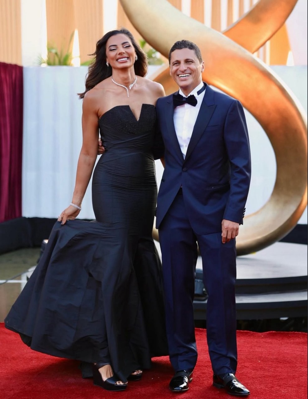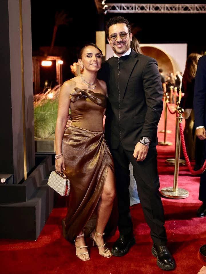 ولم يغب الثنائي طه الدسوقي وزوجته عن المشهد، حيث ظهرا في إطلالة موحّدة باللون الأسود، جمعت بين البساطة والجاذبية، فيما ظهرت زوجته بفستان أسود جريء أبرز ملامحها.