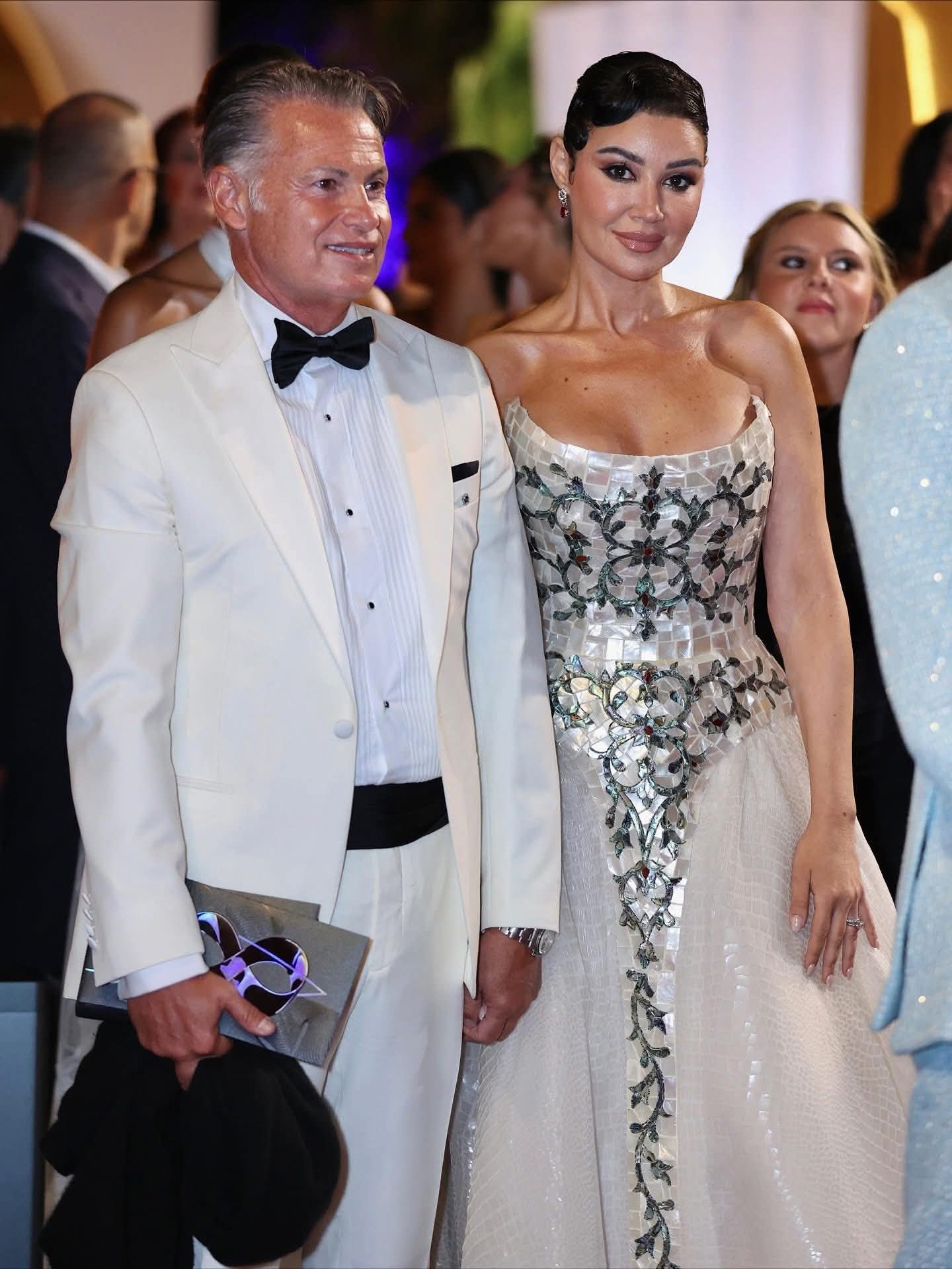 أما المخرجة إيناس الدغيدي فحضرت بصحبة زوجها بفستان أبيض طويل شفاف من الأعلى، ونسّقت معه حقيبة فضية لامعة أضفت لمسة فخمة على مظهرها، في حين اختار زوجها بدلة سوداء أنيقة.