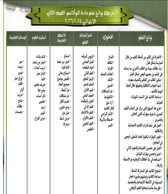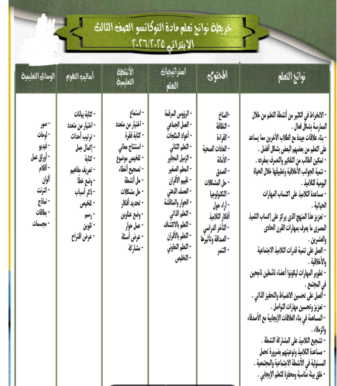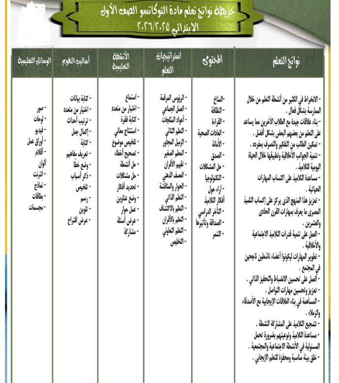 كما يُمكن الاطلاع على خريطة نواتج تعلم مادة التوكاتسو لمختلف الصفوف من خلال الصور التالية
