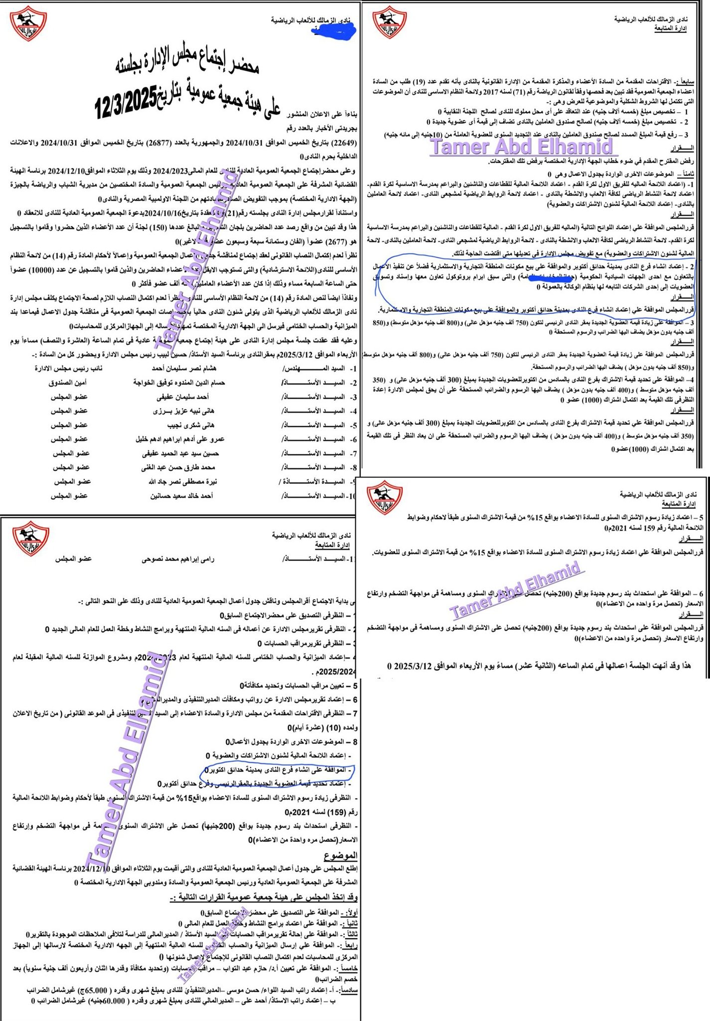 من ناحية أخرى، طالب عدد من أعضاء الجمعية العمومية بضرورة فتح تحقيق عاجل للوقوف على حقيقة ما ورد في المستندات، ومراجعة جميع محاضر الاجتماعات السابقة للتأكد من قانونية القرارات الصادرة خلال الفترة الأخيرة.