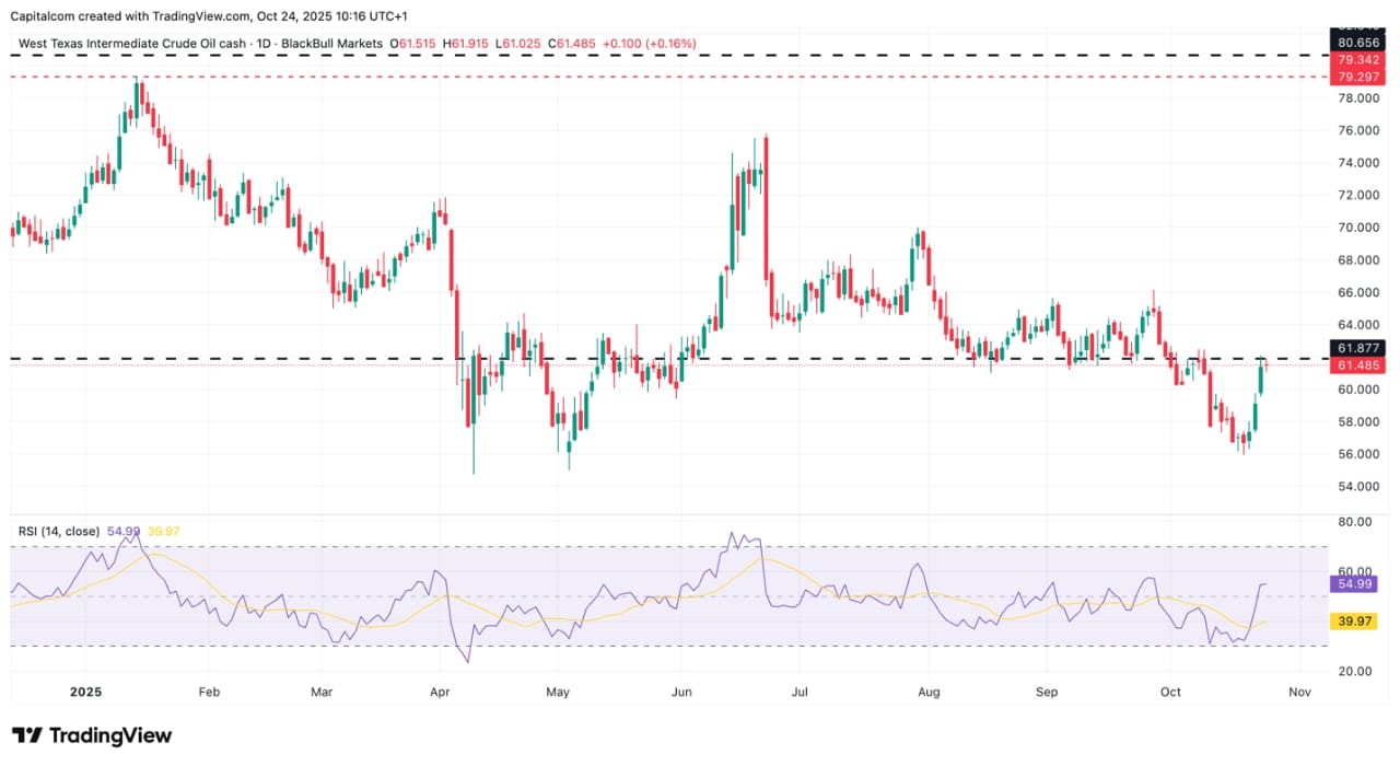 يُظهر الرسم البياني اليومي أن انخفاض سعر الخام الأمريكي كان تدريجيًا ومنظمًا، دون أن يصل مؤشر القوة النسبية (RSI) إلى منطقة التشبع البيعي منذ أبريل، مما يؤكد الاتجاه الهابط طويل المدى رغم الارتداد الأخير. الاختبار الحقيقي سيكون ما إذا كان مستوى المقاومة بين 61.82 و62.45 دولار سيمنع السعر من الصعود خلال الأيام القادمة. إذا حدث ذلك، فإن الاتجاه الهابط سيبقى مسيطرًا. أما إذا تجاوز السعر هذا النطاق، فقد نشهد موجة شراء جديدة نحو مستوى المقاومة التالي عند 64 دولارًا.