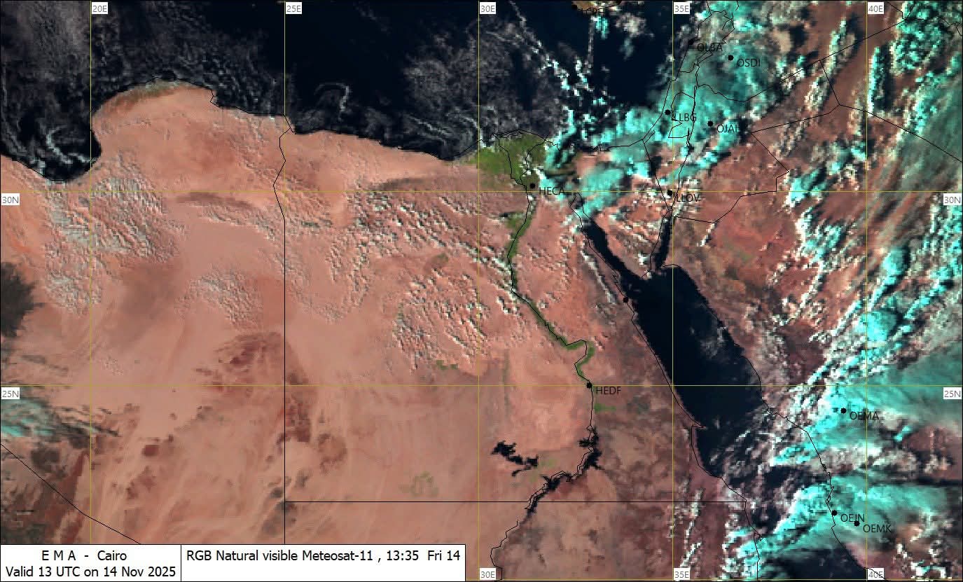 وفي ظل المتابعة المستمرة للحالة الجوية، تُظهر البيانات استمرار تكاثر السحب الرعدية الممطرة على مناطق شمال سيناء، السواحل الشرقية، مدن القناة، مع تقدم هذه السحب تدريجيًا نحو الداخل. كما تشهد مناطق من الوجه البحري ــ خاصة الدقهلية، الشرقية، الغربية، المنوفية، البحيرة، وكفر الشيخ ــ نشاطًا واضحًا للسحب الممطرة، ما يزيد من احتمالية سقوط أمطار غزيرة أحيانًا.