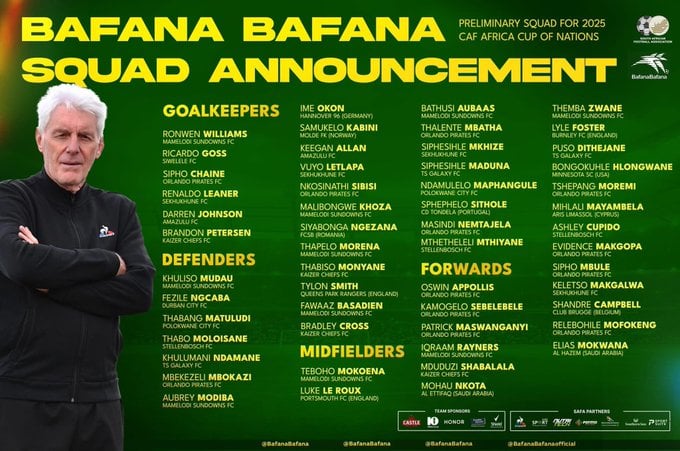 قائمة منتخب جنوب أفريقيا لكأس الأمم 2025