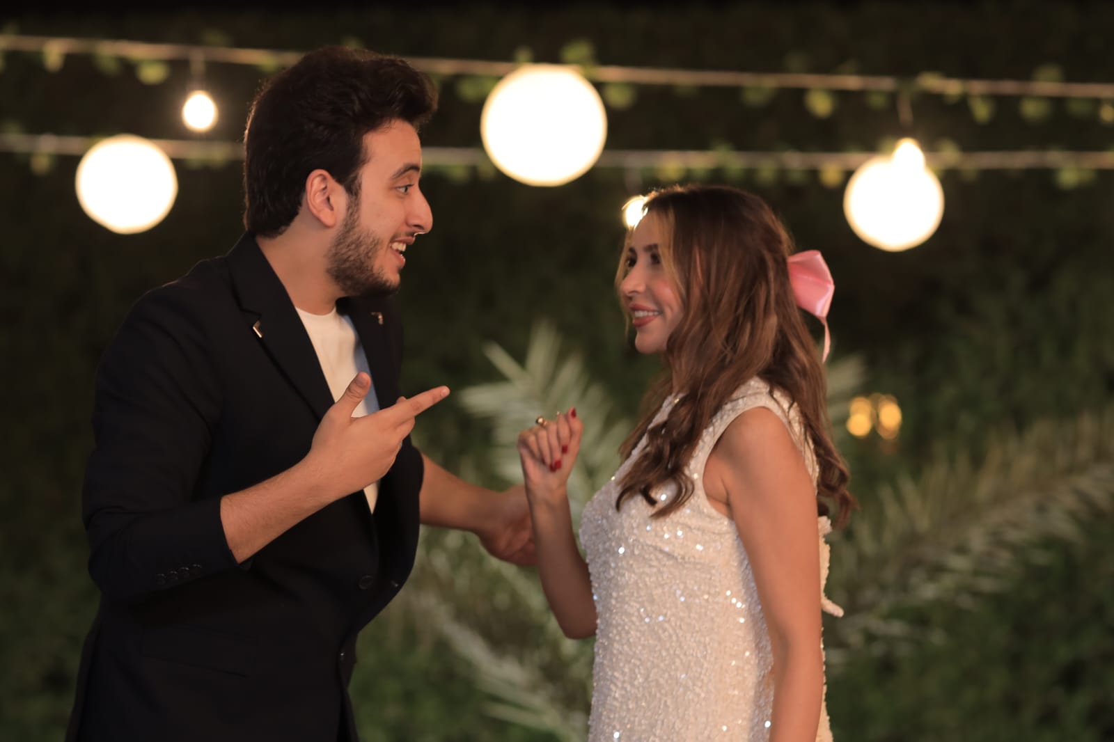 جنات والحسن عادل ينتهيان من تصوير كليب الليلة حلوة