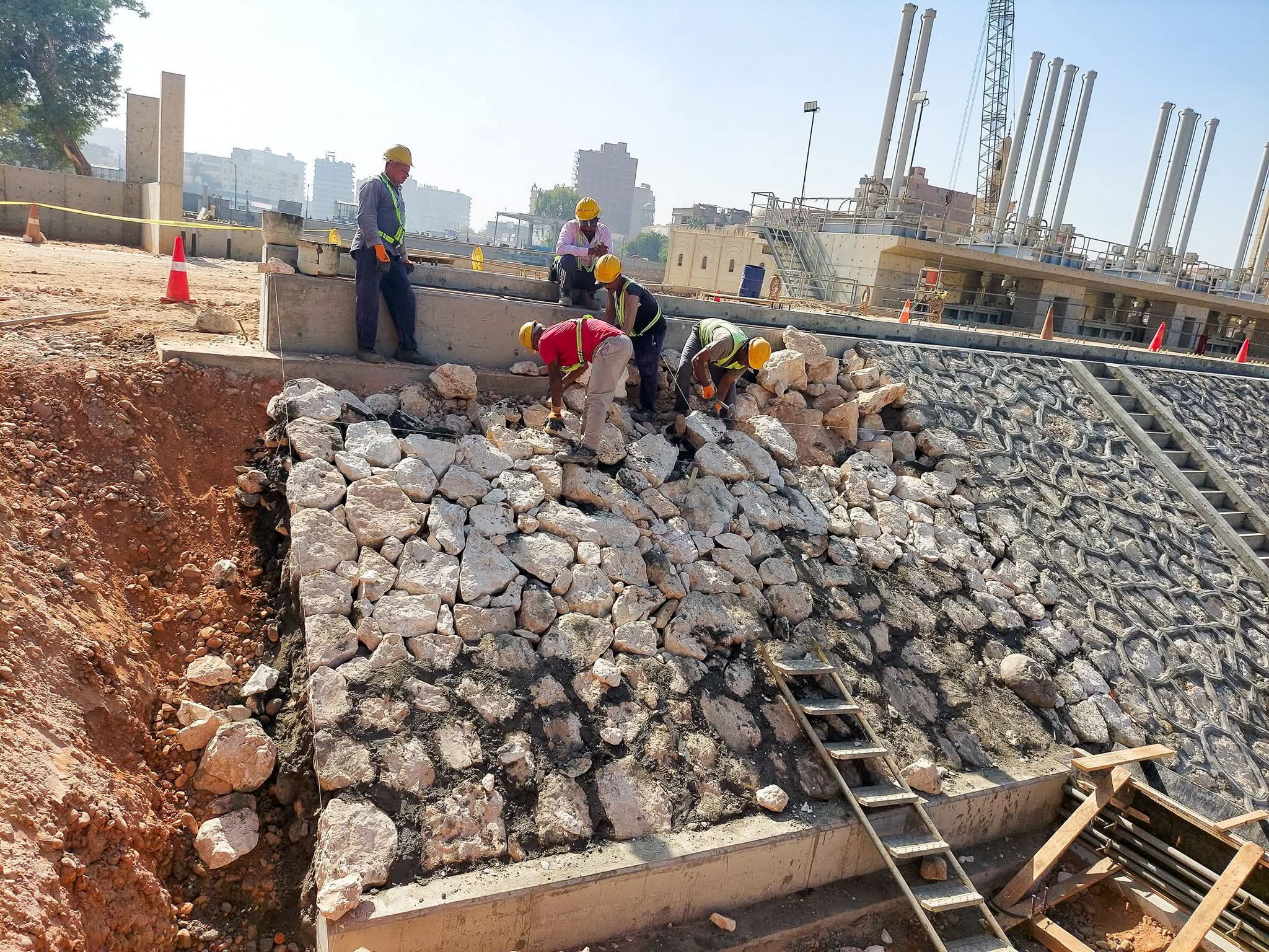 كما يجرى تنفيذ أعمال الطرق والحوائط الساندة وتكسية الميول بمبانى الأحجار و الأسوار وشبكة الكهرباء والاضاءة الخارجية، وجارى تركيب منظومة التشغيل فى مبنى التحكم، وجارى التشطيبات لمبنى التشغيل والتحكم ومبنى مخازن علب التجفيف للصيانة.