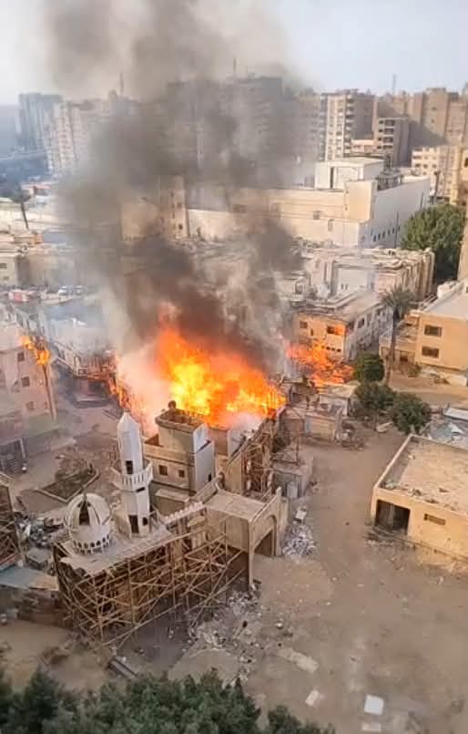 اندلاع حريق هائل داخل ديكور مسلسل الكنج باستوديو مصر في منطقة الهرم