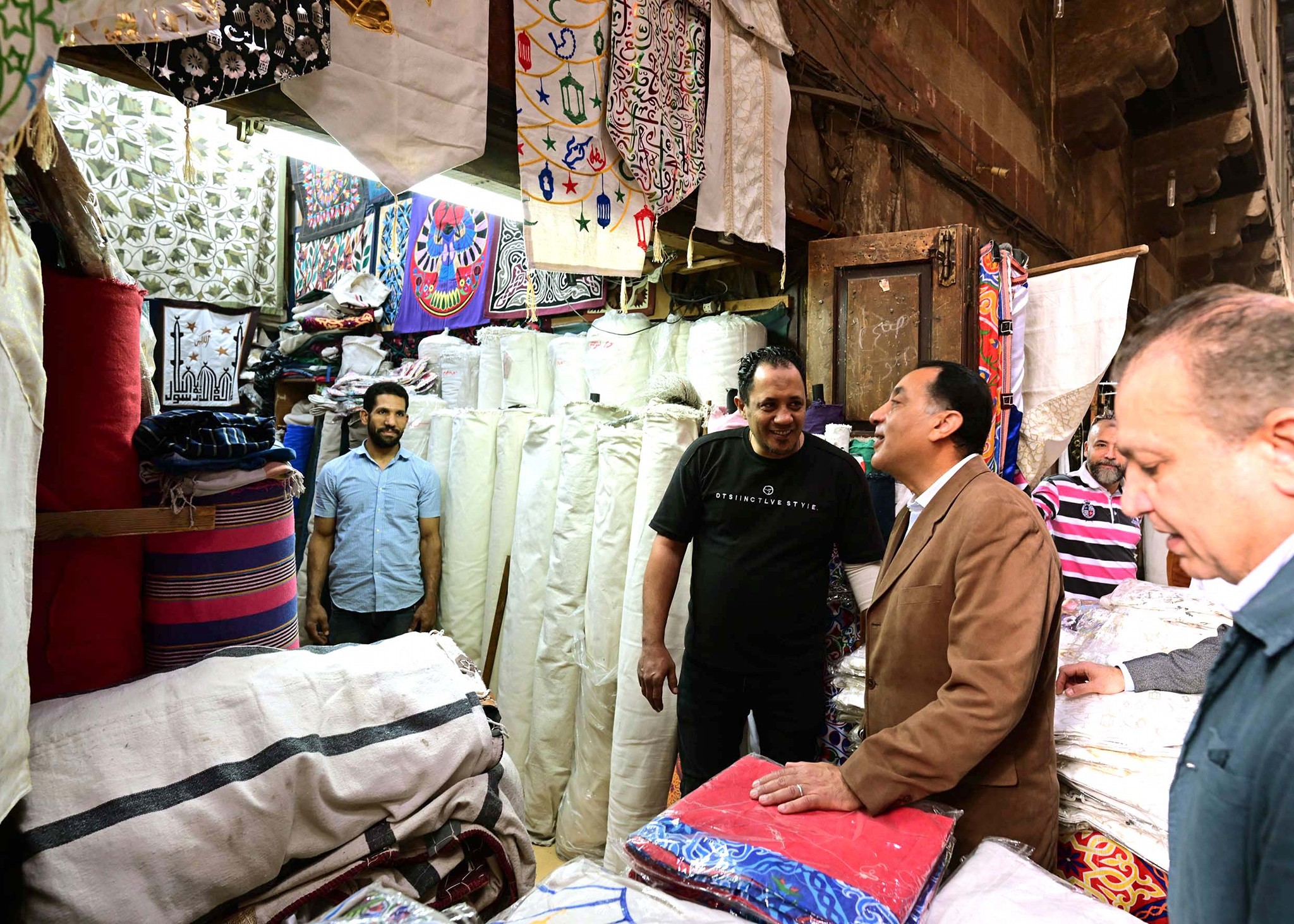 وخارج المسار الرسمي للزيارة، حرص رئيس الوزراء على التجول داخل منطقة الخيامية، الشهيرة بصناعة المنسوجات اليدوية والزخارف التراثية.