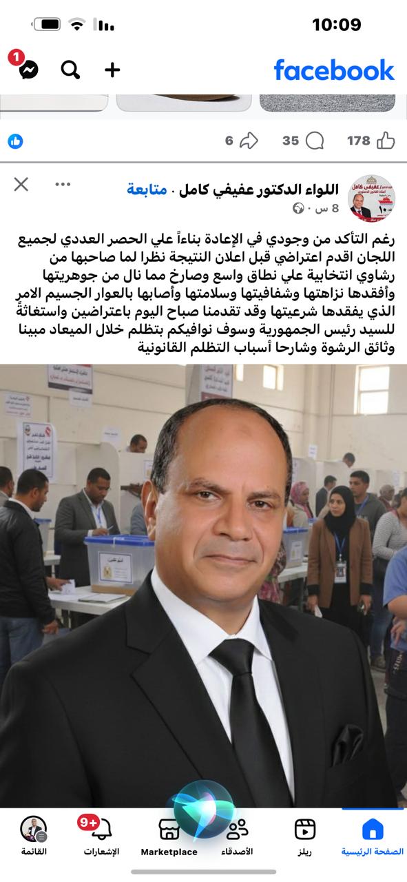 وأكد اللواء عفيفي كامل أنه سيواصل اتخاذ الإجراءات القانونية التي يراها ضرورة لضمان “صون إرادة الناخبين”.