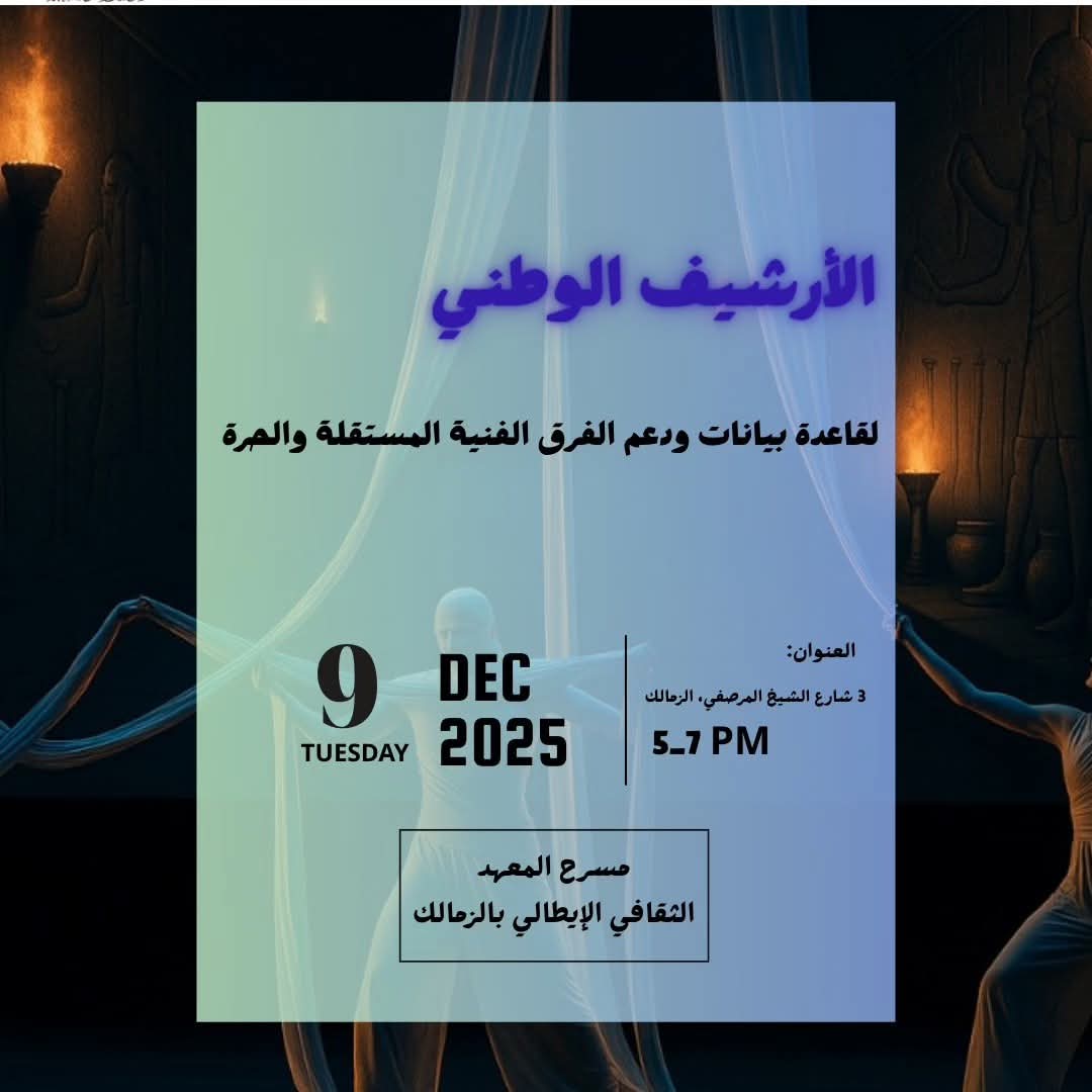 غدا مؤتمر إطلاق وتدشين مشروع “الأرشيف الوطني لدعم الفرق والمهرجانات المستقلة” بمسرح المعهد الثقافي الإيطالي