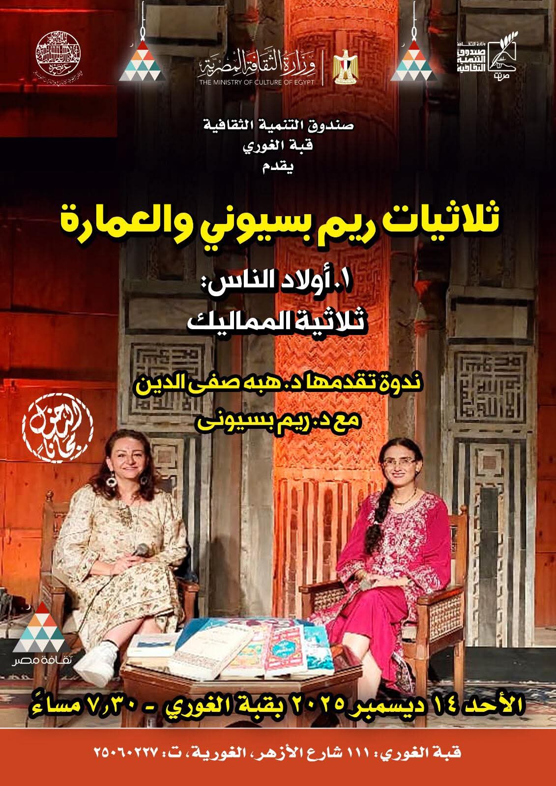 كما تمثل فرصة مميزة لجمهور قبة الغوري للتعرف عن قرب على عالم د. ريم بسيوني الروائي، وما تحمله ثلاثياتها من قراءة إنسانية ومعمارية دقيقة لمراحل مفصلية في التاريخ المصري.