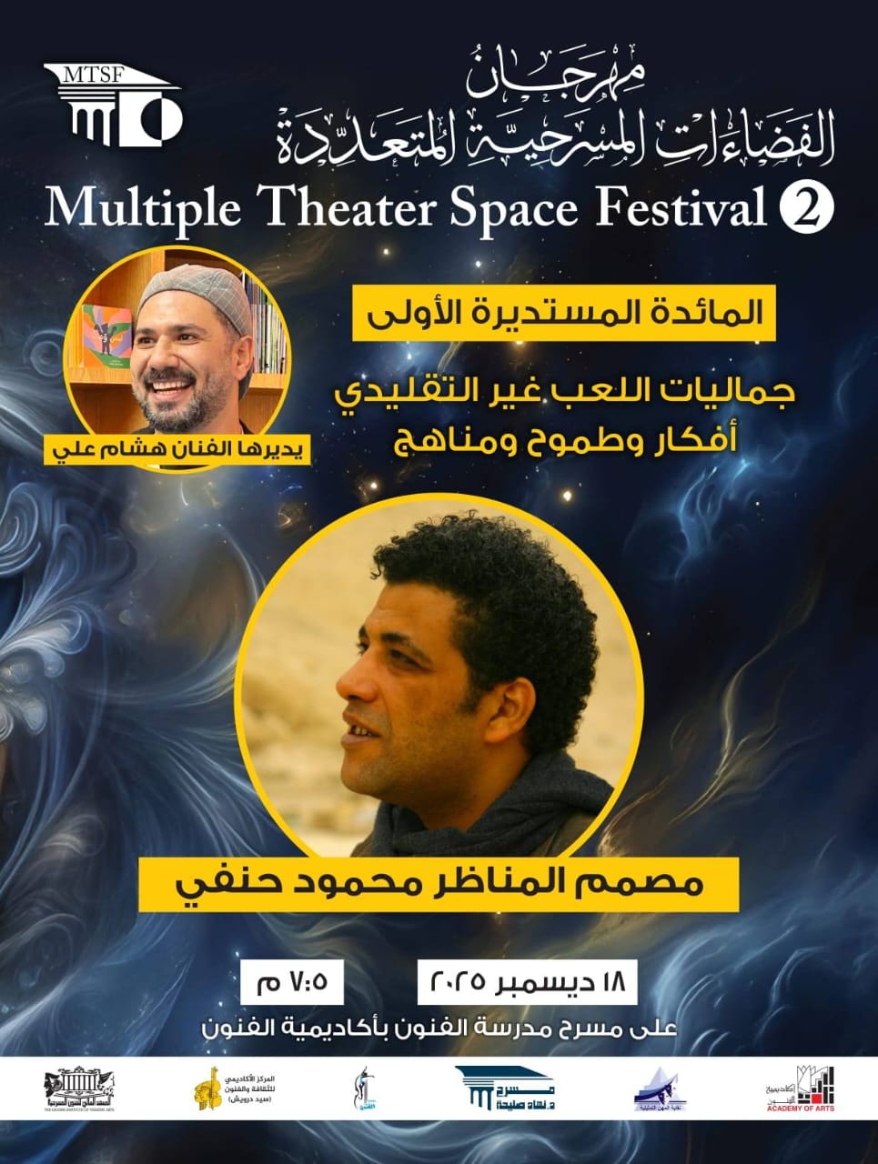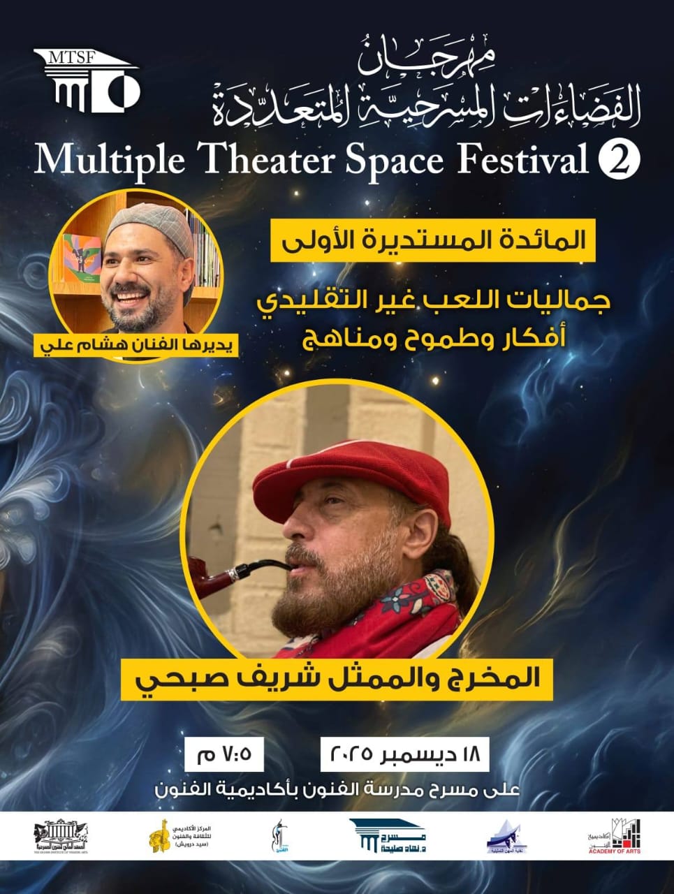 في إطار استعدادات «مهرجان الفضاءات المسرحية المتعددة» للدورة الثانية، دورة الفنان «محمد صبحي»، والتي من المقرر أن تقام عروضها في شهر أبريل 2026 تحت رعاية معالي وزير الثقافة الأستاذ الدكتور أحمد فؤاد هنو، وإشراف الأستاذة الدكتورة غادة جبارة رئيس أكاديمية الفنون ورئيس المهرجان والتي وجهت بضرورة أن تبدأ فعاليات المهرجان قبل انطلاقه بستة أشهر خاصة وهو مهرجان غير تقليدي وفعاليات يجب أن تكون غير تقليدية بغرض الاستفادة القصوى لكل القائمين على العمل المسرحي في مصر من عاملين وطلاب وهواة.