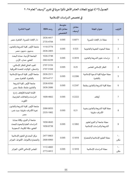 وفقًا لتقرير معامل التأثير العربي "أرسيف" (ARCIF) 2025