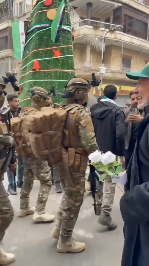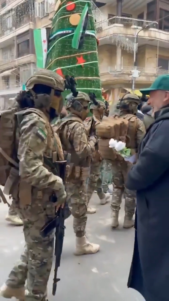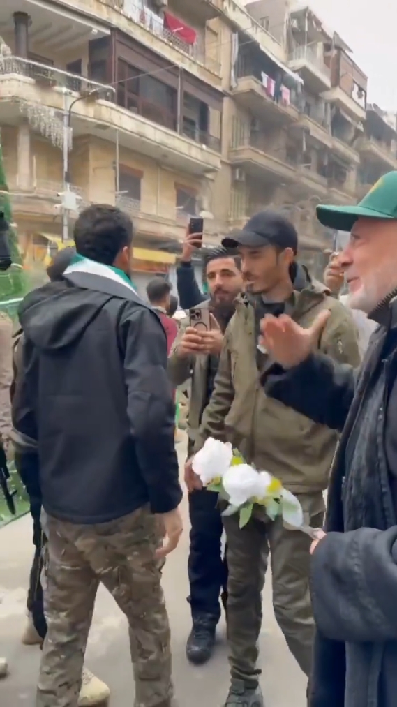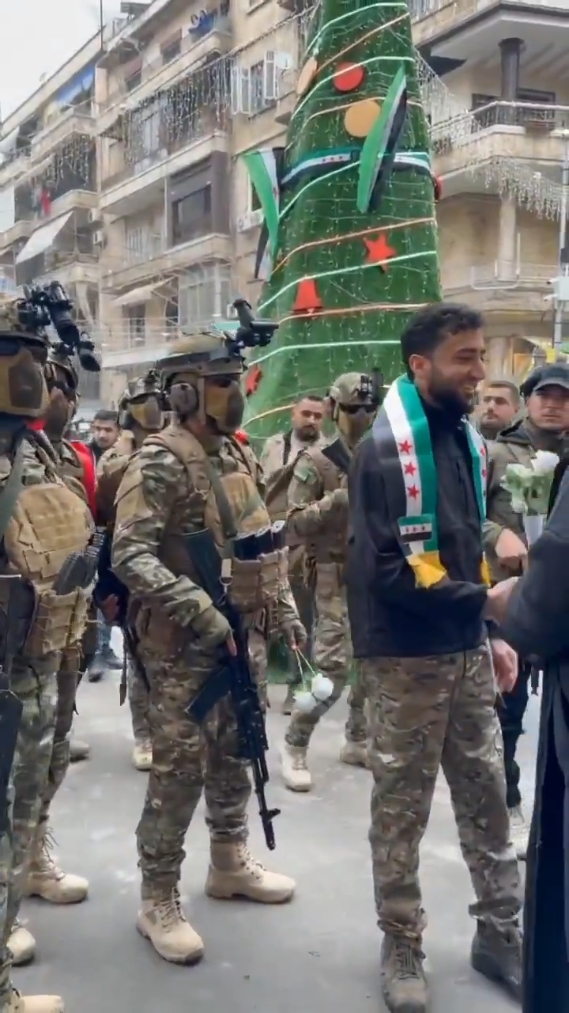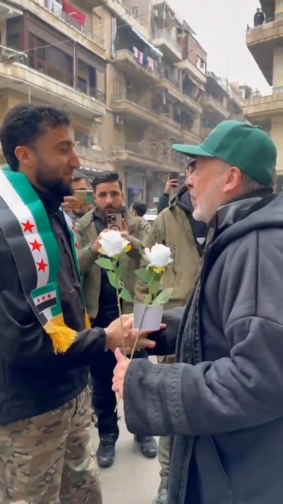 وأظهر مقطع فيديو نشرته وسائل إعلام سورية عددا من أفراد الأجهزة الأمنية السورية يقدمون التهاني لعدد من الأهالي بحلب.