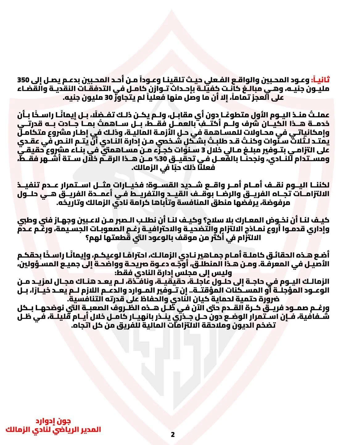 أضع هذه الحقائق كاملة أمام جماهير نادي الزمالك، احترامًا لوعيكم، وإيمانًا راسخًا بحقكم الأصيل في المعرفة. ومن هذا المنطلق، أوجّه دعوة صريحة وواضحة إلى جميع المسؤولين، وليس إلى مجلس إدارة النادي فقط: