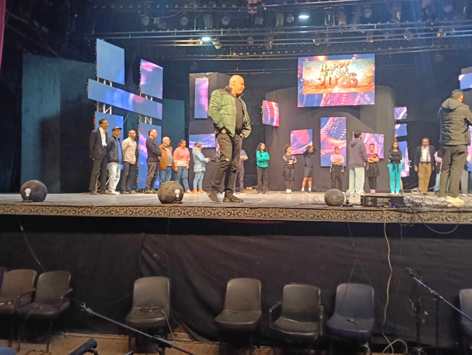 شهد الفنان تامر عبدالمنعم رئيس البيت الفني للفنون الشعبية والإستعراضية البروفات النهائية لإحتفالية رأس السنة المقرر إقامتها غدا الأربعاء على مسرح البالون.