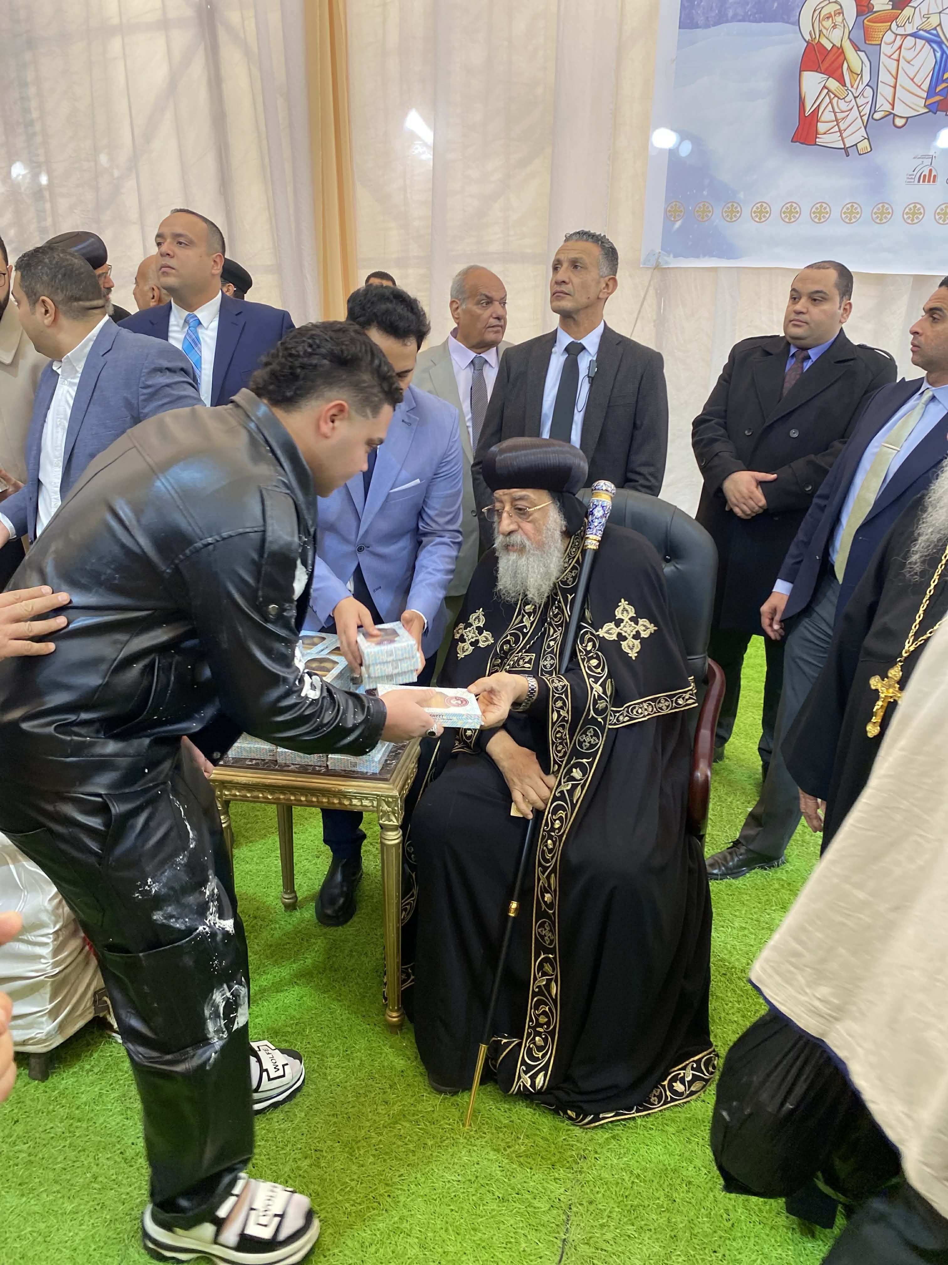 البابا تواضروس يوزع حلوى العيد على الأقباط