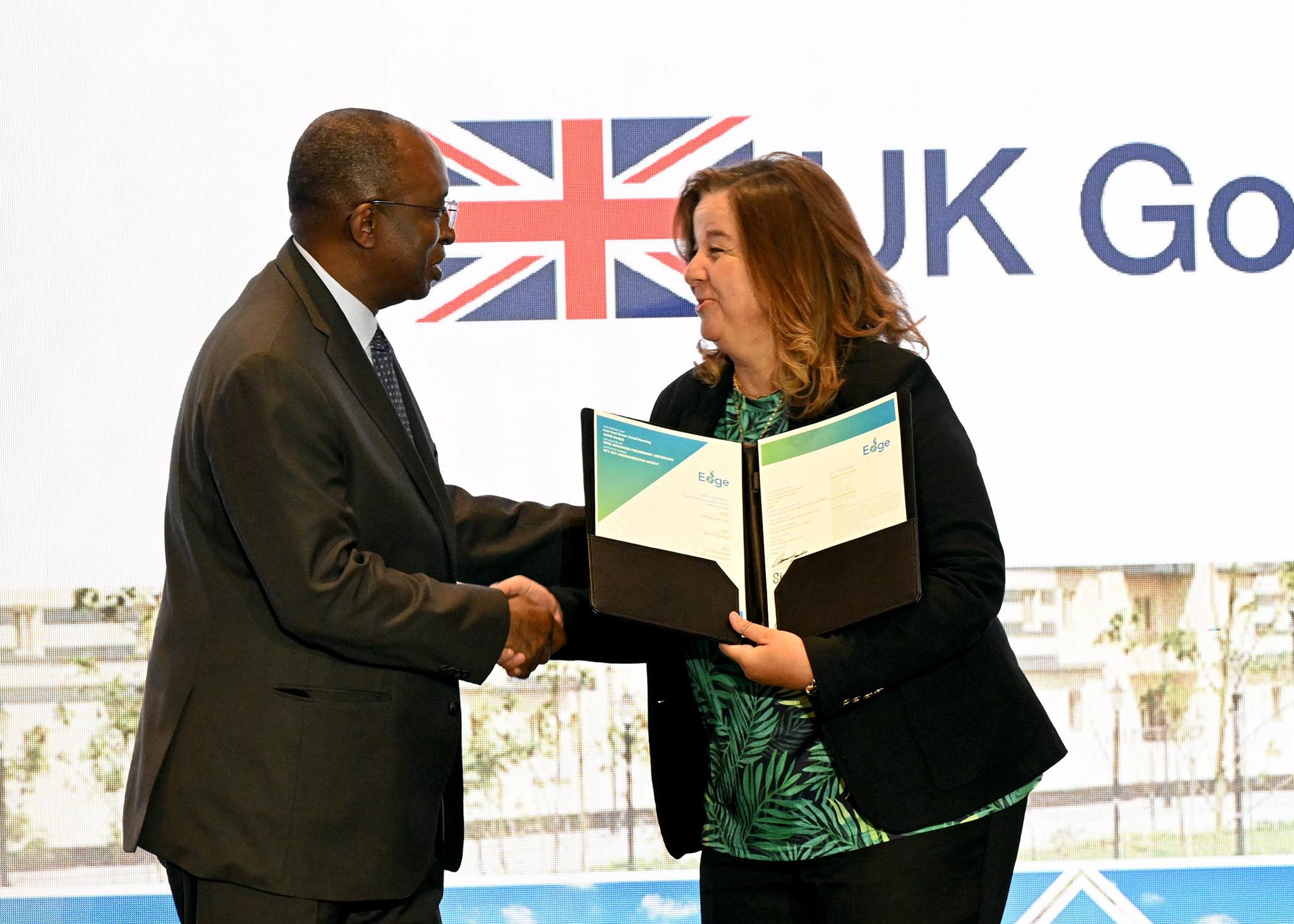 وفي ختام الفعاليات، تسلمت السيدة مي عبد الحميد شهادة EDGE Advanced – Preliminary Certificate، ضمن نظام تقييم المباني الخضراء التابع لمجموعة البنك الدولي، من السيد شيخ عمر سيلا، تقديرًا للالتزام بمعايير الاستدامة وكفاءة الموارد.