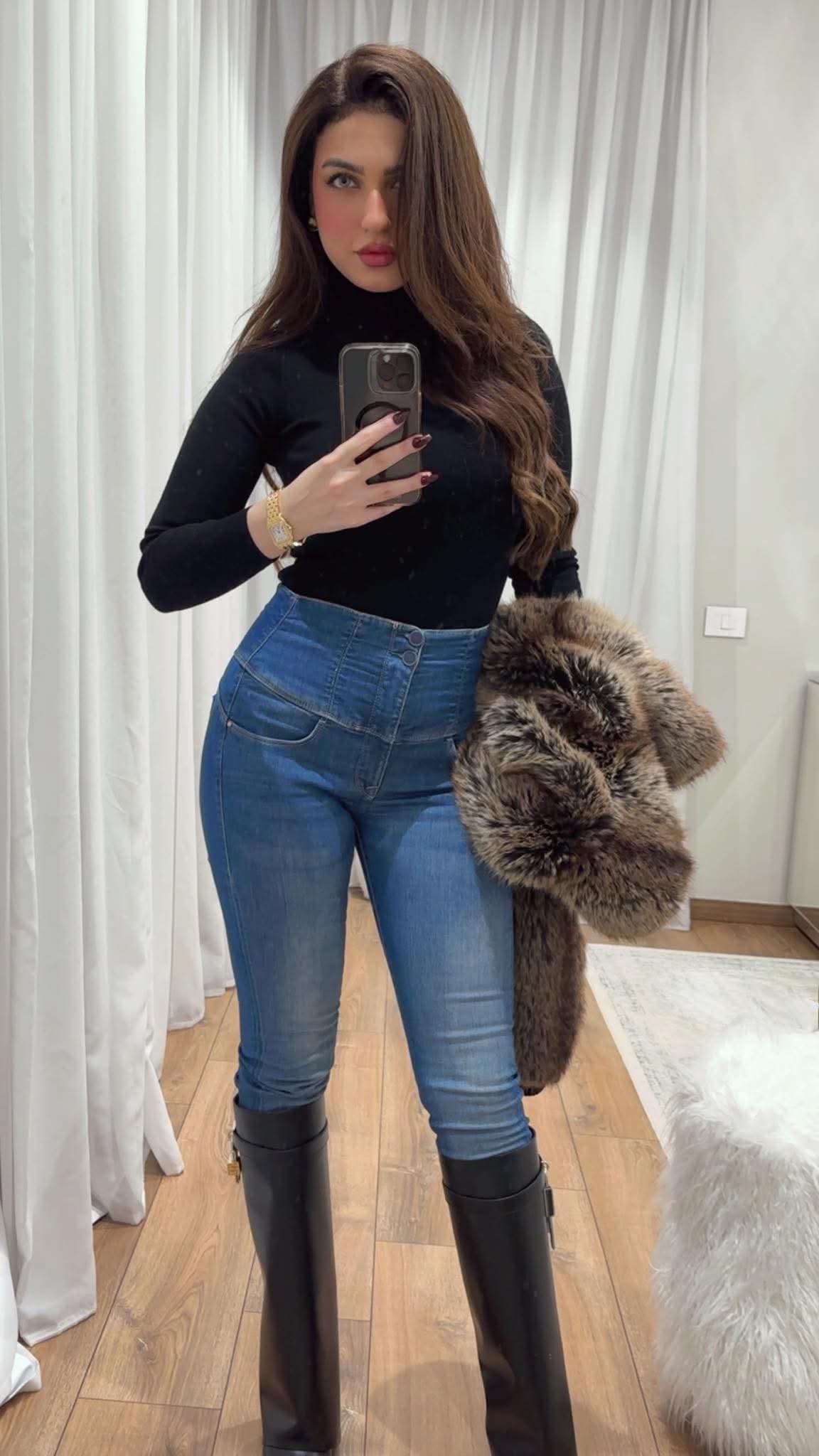 وظهرت ياسمين في إطلالة كاجوال أنيقة ومريحة في الوقت ذاته، حيث ارتدت بنطال جينز كلاسيكي بلون ازرق، مع توب أسود بسيط، وحذاء طويل باللون الأسود أبرز قوامها الممشوق وخصرها المنحوت بطريقة جذابة، كما أضافت هذه الإطلالة لمسة عصرية لمتابعيها، مما جعلها تبدو متألقة بشكل طبيعي وعصري في آن واحد.
