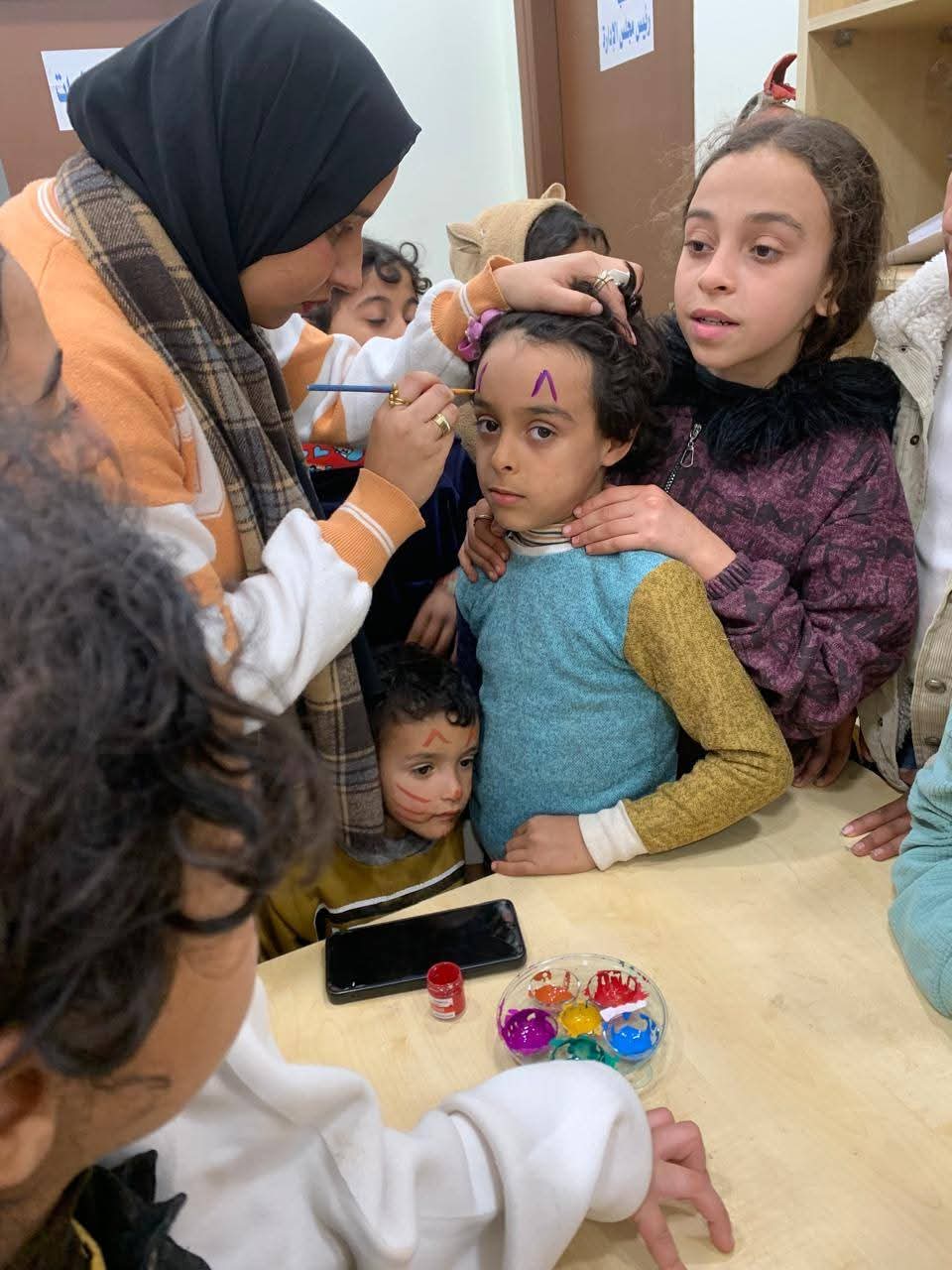 وتواصلت الفعاليات مع فقرة رسم على الوجه نفذتها فاطمة سعيد وسط تفاعل كبير من الأطفال، تلاها ورشة تصميم ماسكات وتيجان وأساور بخامات معاد تدويرها.