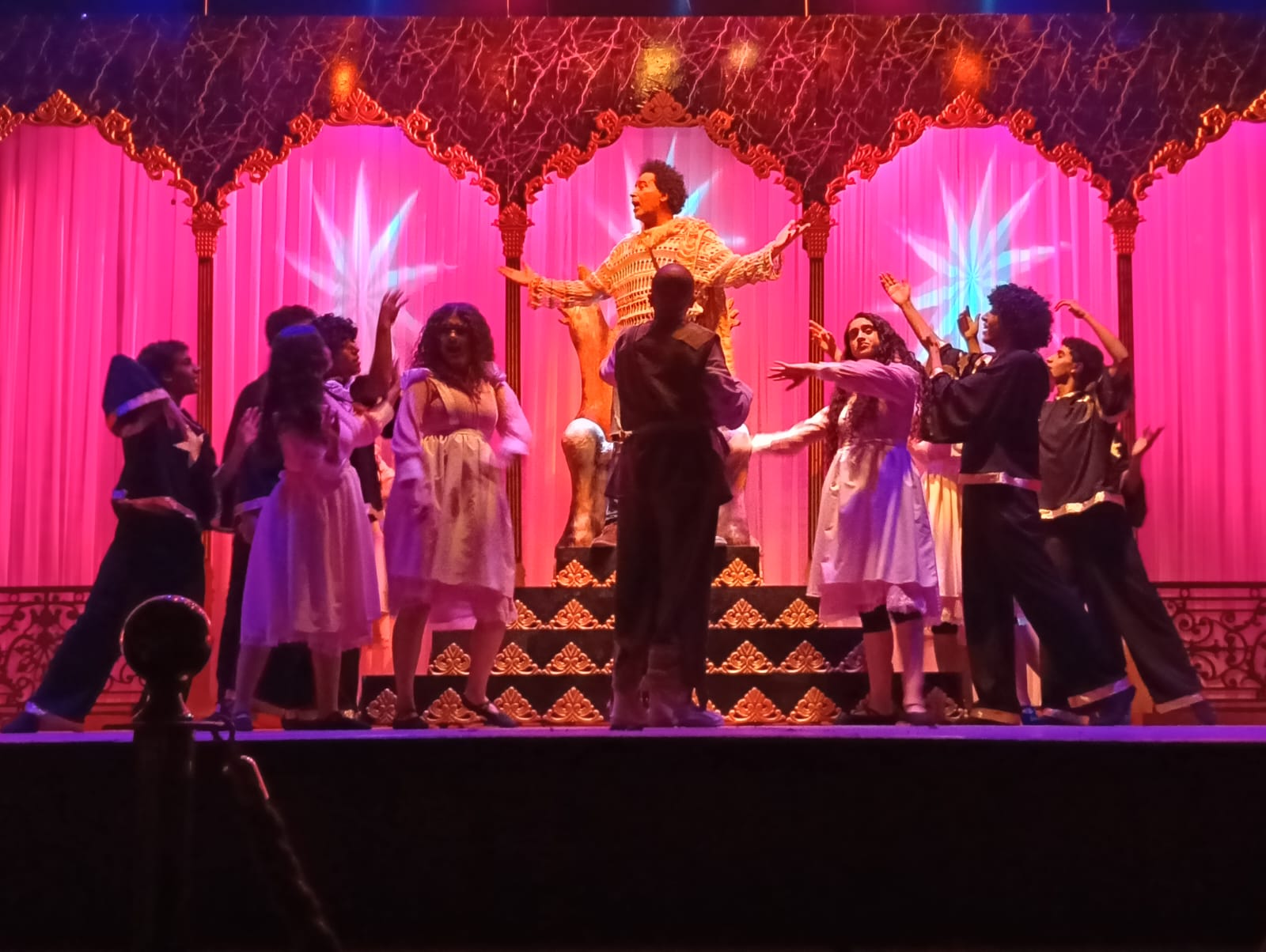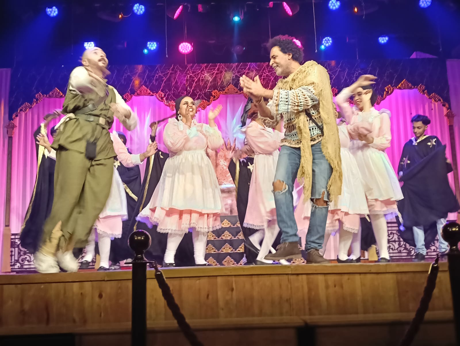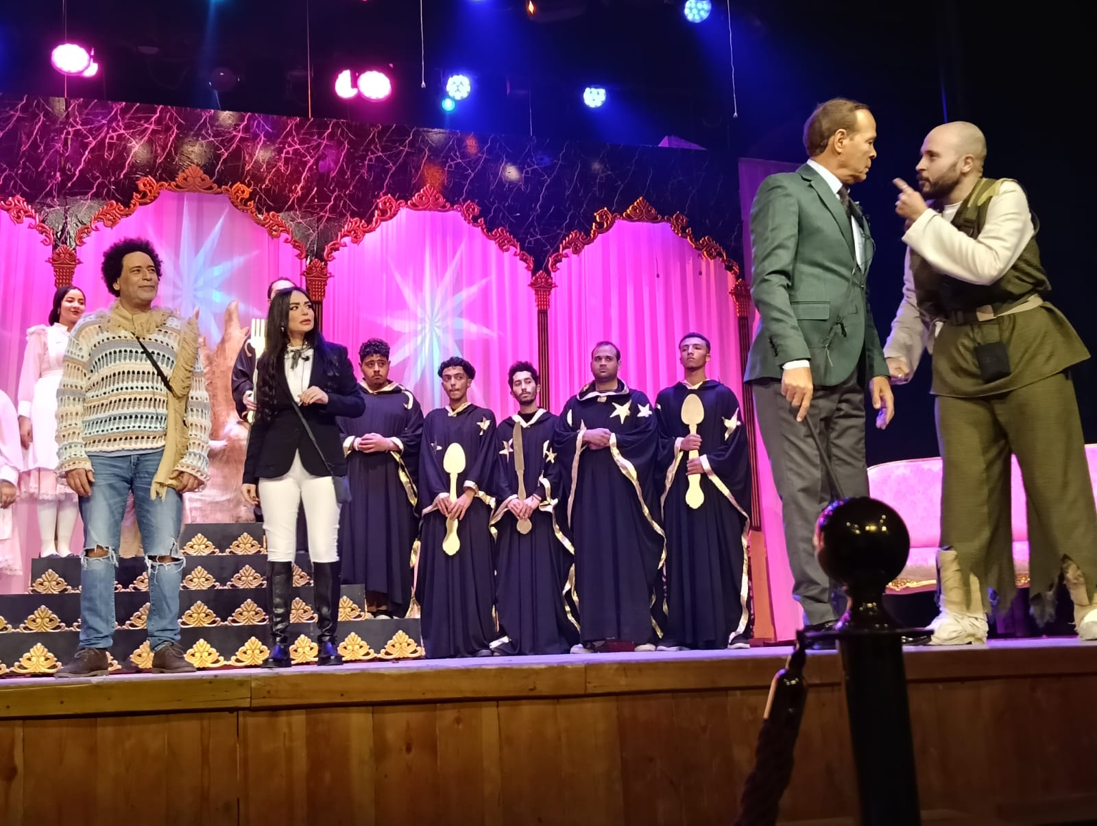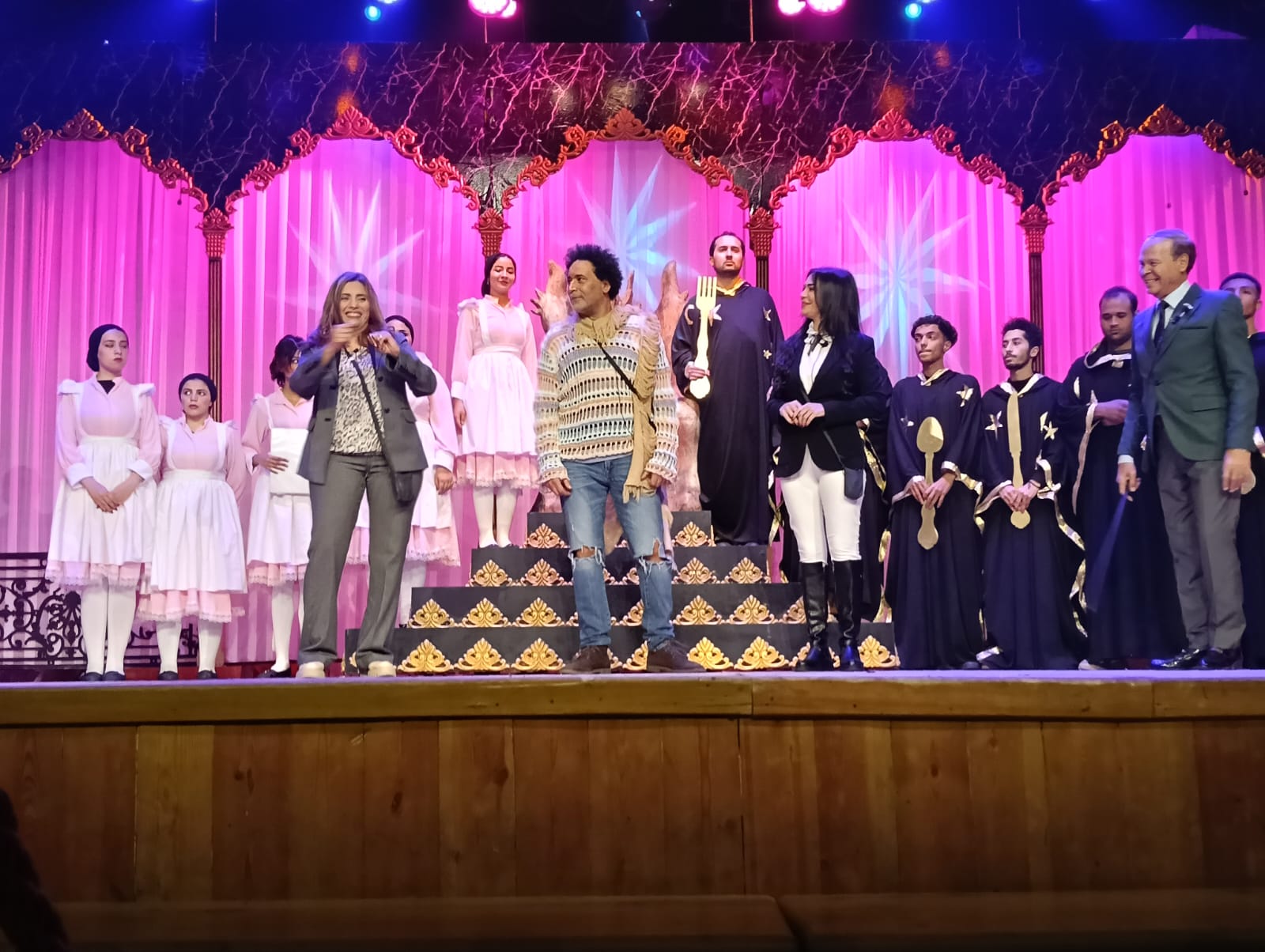 بدأت فعاليات العرض بالسلام الوطني لجمهورية مصر العربية، ثم انطلقت أحداث المسرحية وسط تصفيق حار من الحضور، الذي ضم عددًا كبيرًا من أصدقاء وأقارب أبطال العمل، إلى جانب جمهور المسرح المحب للعروض الاستعراضية والغنائية.