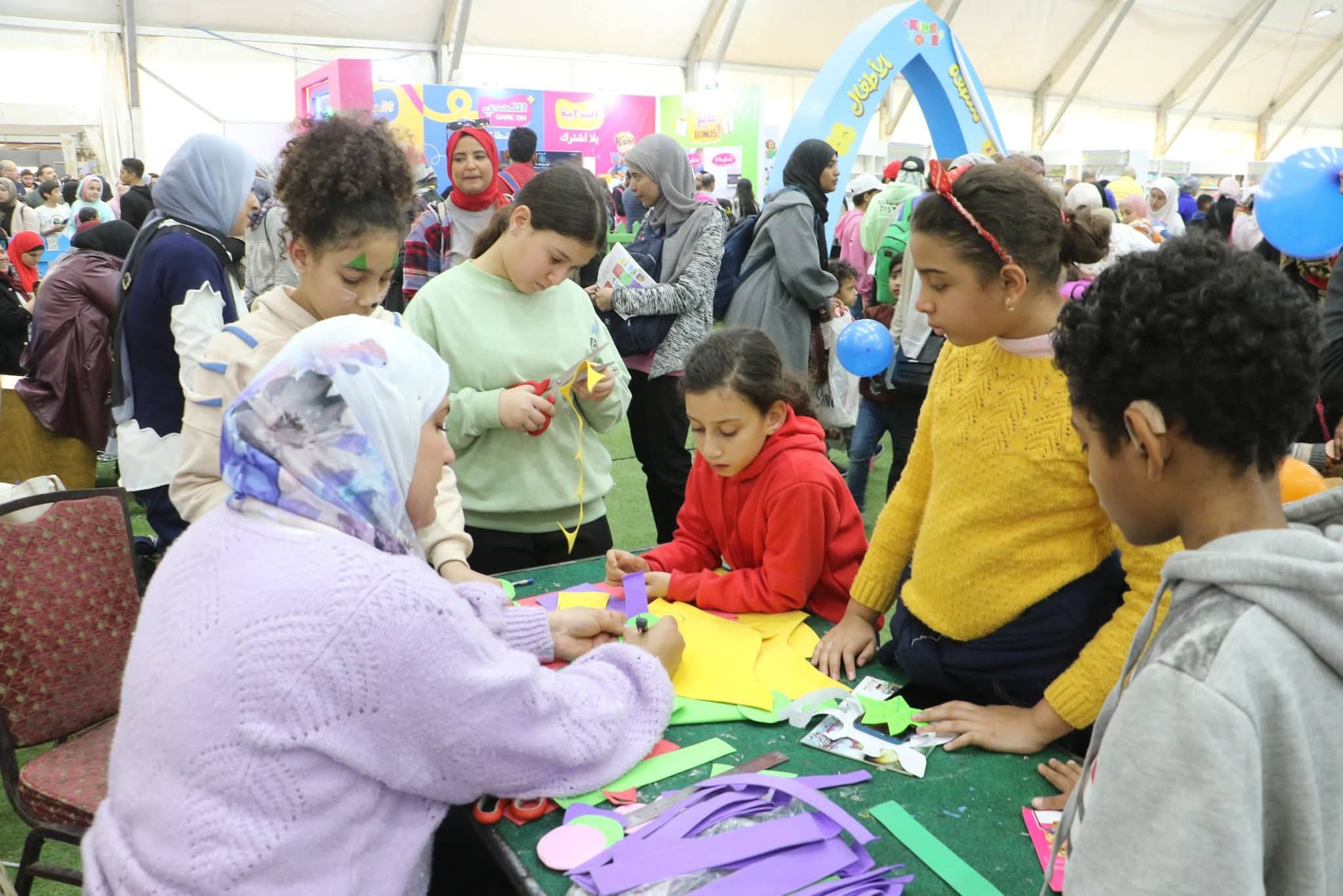 ورش الرسوم المتحركة والأشغال اليدوية ضمن أنشطة قصور الثقافة للأطفال بمعرض الكتاب