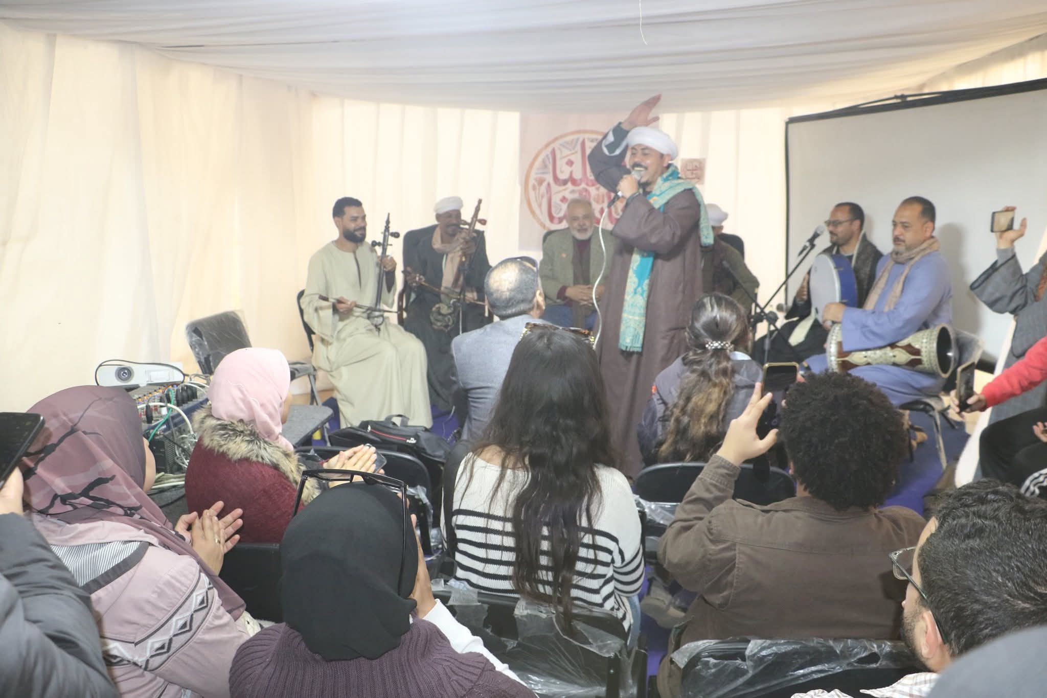 وأشار إلى عدد من كبار المبدعين، منهم العزب الإسناوي، ورشاد عبد العال، وسيد الإسناوي، ممن تعود أصولهم إلى بني هلال، إضافة إلى نماذج من فن المديح التي تفاعل معها الجمهور، تأكيدا على غنى التراث غير المادي بمدينة إسنا.