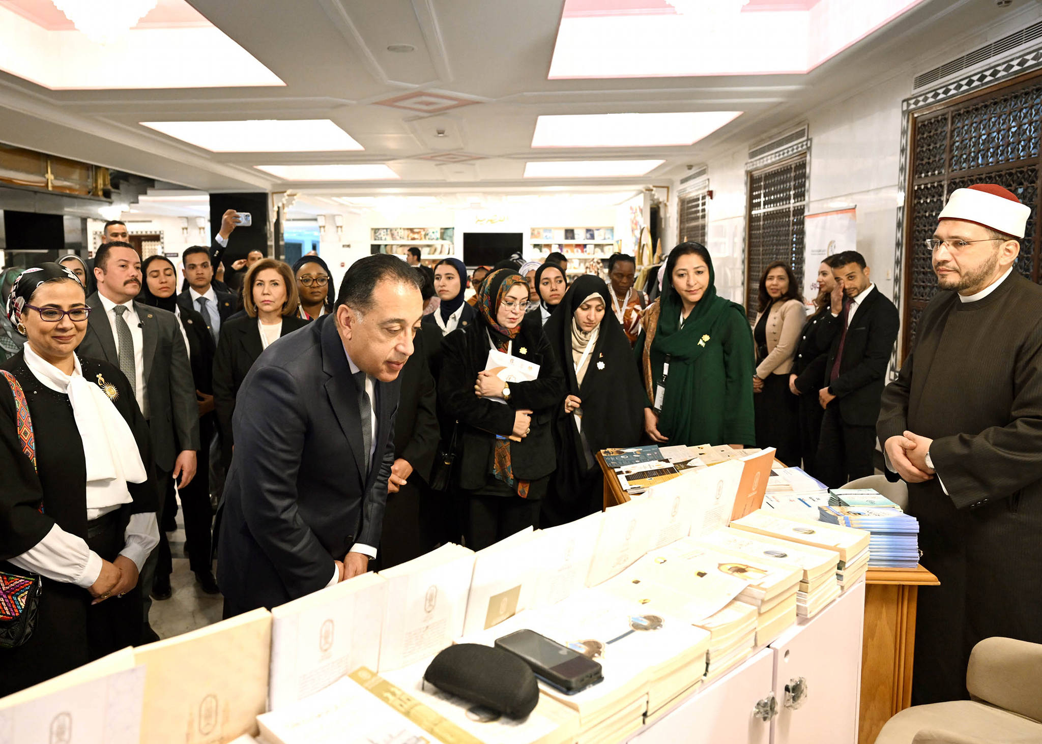 كما تفقد رئيس الوزراء معرض الأزهر الشريف المصاحب، الذي ضم مجموعة كبيرة من الإصدارات العلمية والدينية.