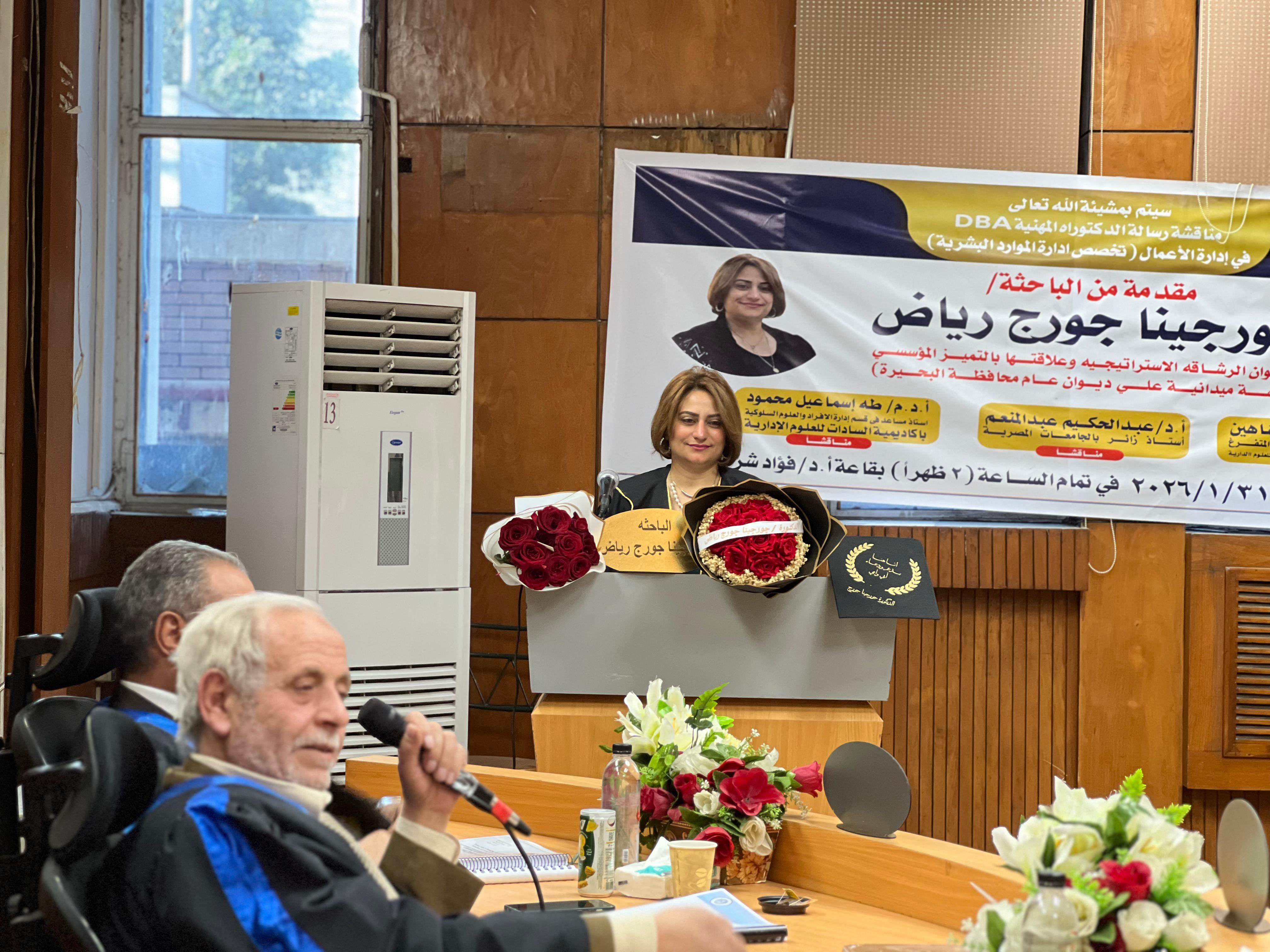 شهد فرع المعادي بأكاديمية السادات للعلوم الادارية مناقشة رسالة دكتوراه بعنوان “الرشاقة الاستراتيجية وعلاقتها بالتميز المؤسسي.. دراسة ميدانية على ديوان عام محافظة البحيرة” للباحثة جورجينا جورج رياض.