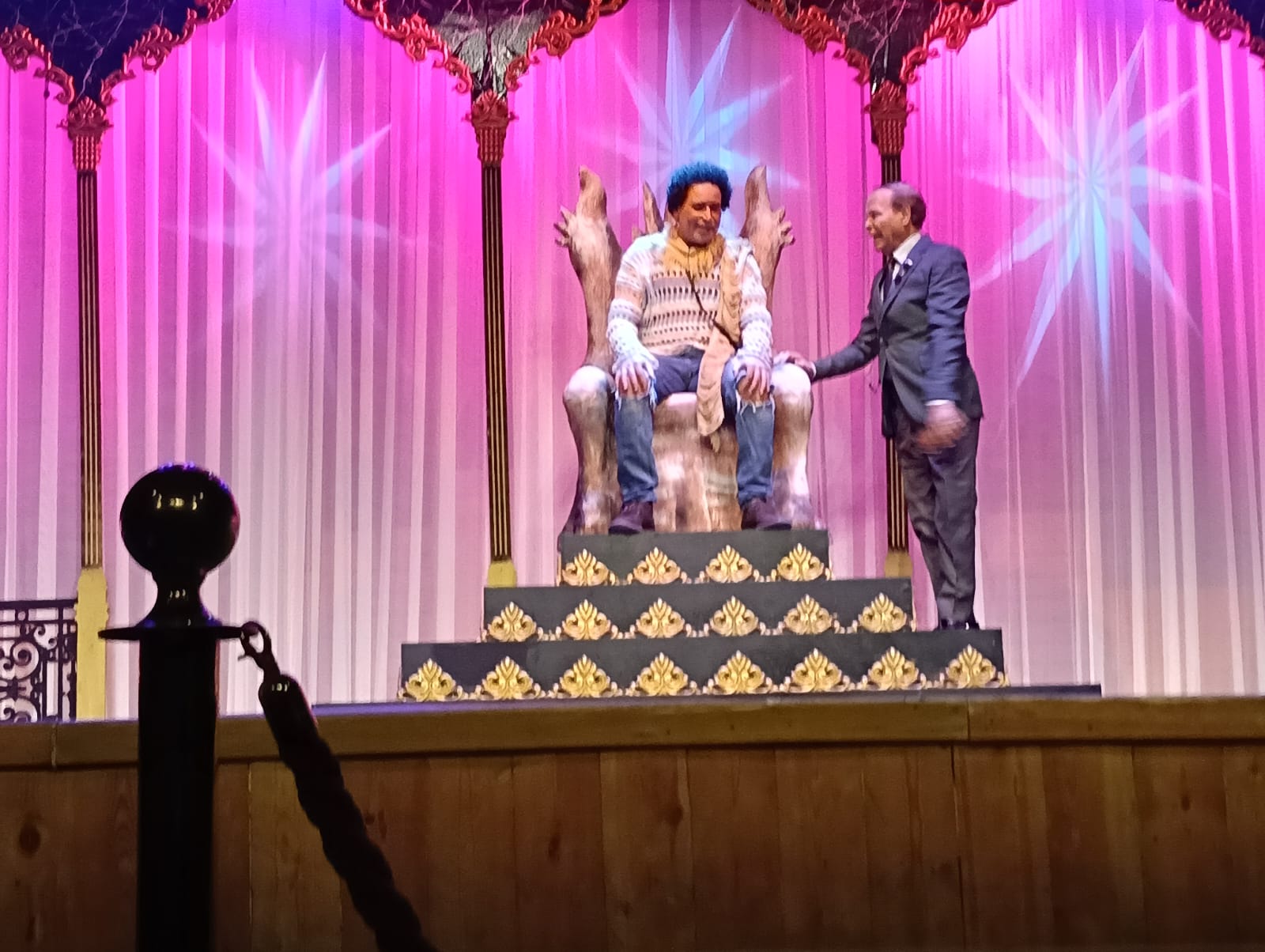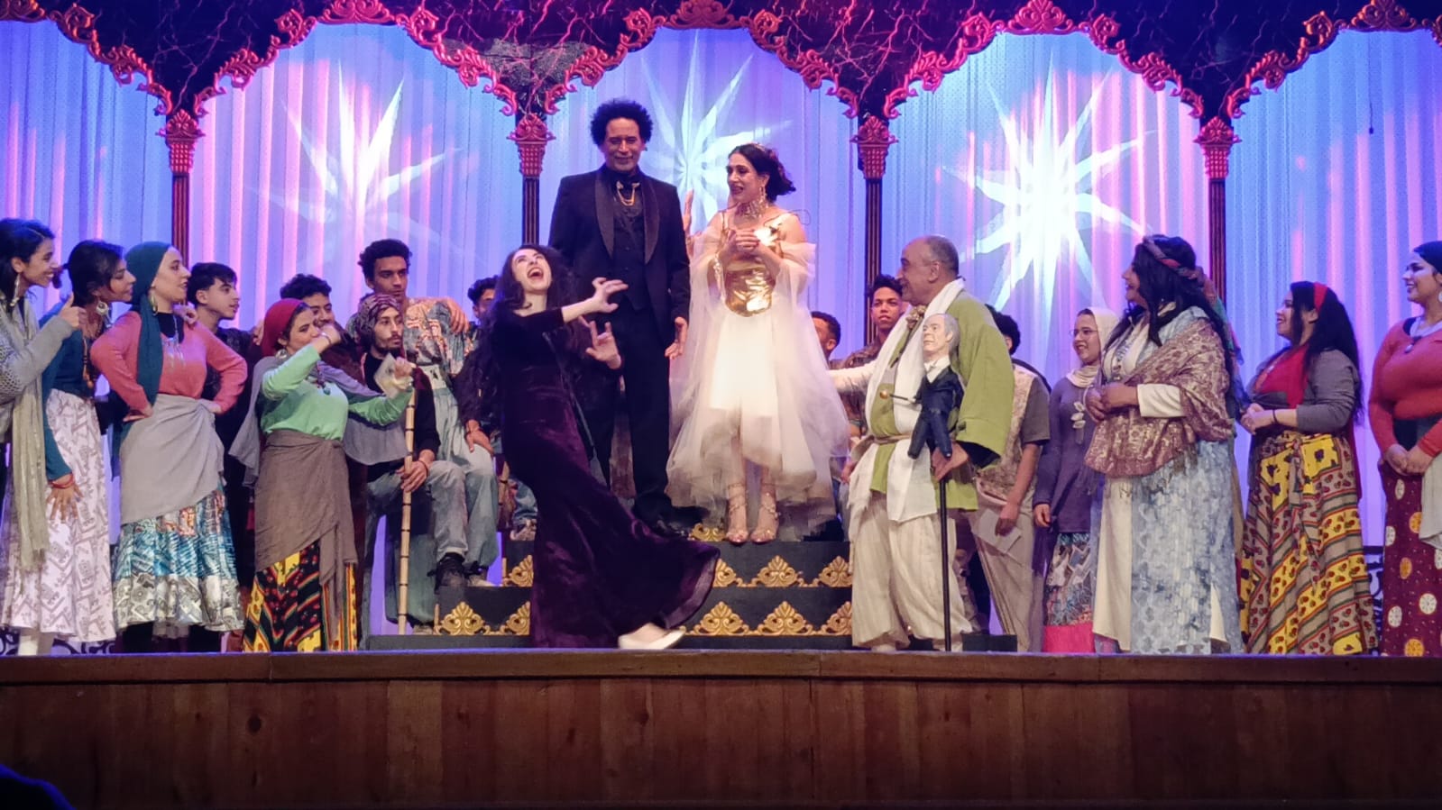 العرض من بطولة ميرنا وليد، مصطفى شوقي، محمود عامر، حسان العربي، حامد سعيد، رشا فؤاد، عبير مكاوي، ليلى مراد، يوسف مراد، ونور العزيز، وهو من تأليف وإخراج مراد منير، الذي يقدم رؤية مسرحية تعتمد على الإبهار البصري واللوحات الغنائية الراقصة، ما جعله واحدًا من أبرز العروض الجماهيرية في الموسم الحالي.