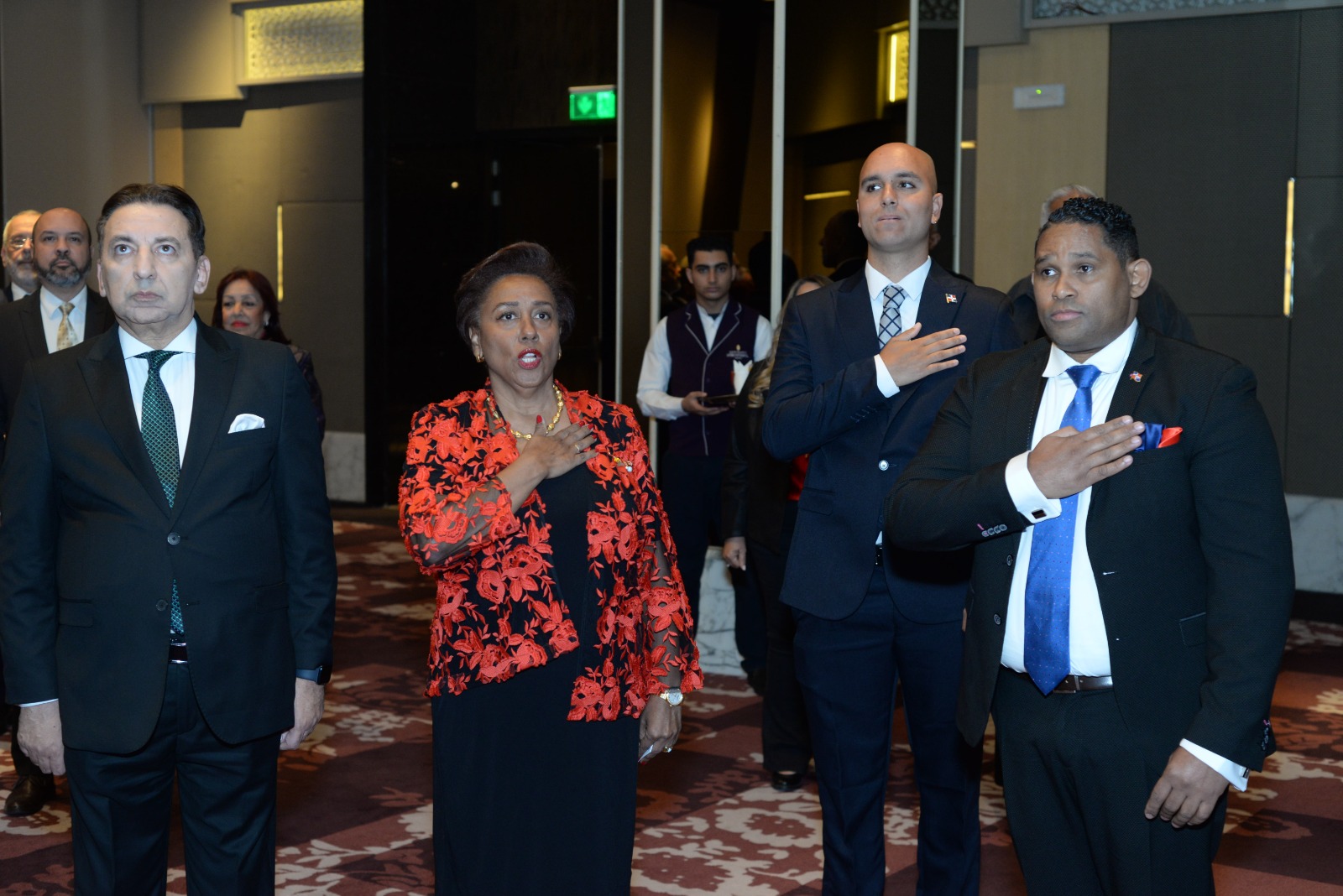 واستُهلت الاحتفالية بعزف السلامين الوطنيين لكل من جمهورية مصر العربية وجمهورية الدومينيكان، في مشهد جسّد الاحترام المتبادل بين البلدين.