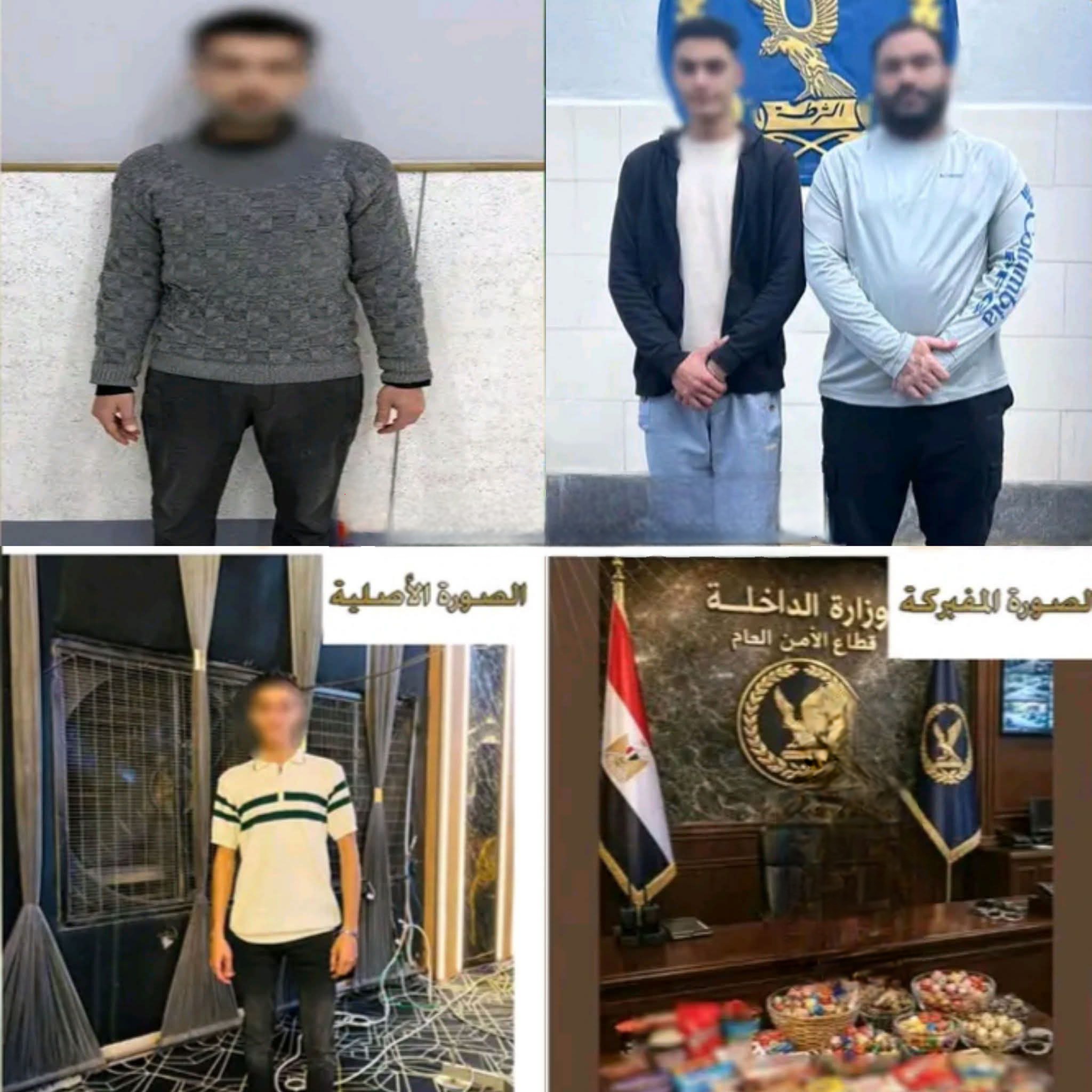 بالفحص أمكن تحديد وضبط صاحب الحساب المشار إليه والشخص الظاهر بالصورة (صاحب محل عطارة، عامل بذات المحل - مقيمان بدائرة مركز شرطة قلين) وبمواجهتهما أقر الأول بقيامه بتصوير الثانى وتعديل صورته بإستخدام الذكاء الإصطناعى وفبركتها لتوحى كونه متهم ومقبوض عليه إسوة بالصور المتداولة بالصفحة الرسمية لوزارة الداخلية ونشرها على حسابه بغرض المزاح ، وقيام آخر (عامل- مقيم بدائرة مركز سيدى سالم) "تم ضبطه" بإعادة نشر الصورة لاحقاً والتعليق عليها بذات الأسلوب، وبمواجهته أقر بإعادته نشر الصورة على صفحته بمواقع التواصل الإجتماعى لتحقيق نسب مشاهدات.