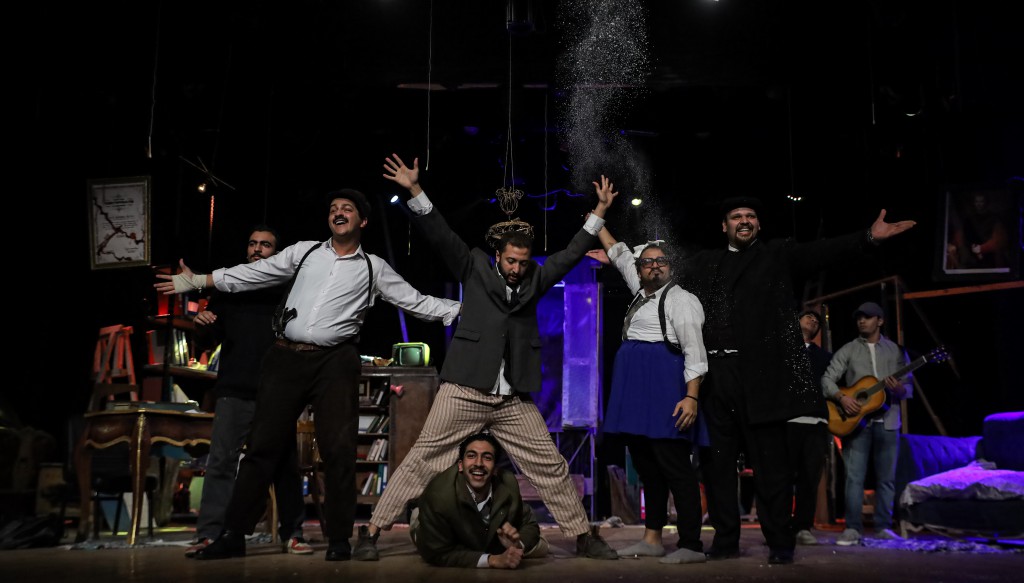 العرض من بطولة باسم داوود، حسام سيد، عبد الرحمن الزيدي، سهيلة الأنور، يوسف مراد، وأمير الصم، وهو مأخوذ عن نص للكاتب الإيطالي داريو فو، بينما تولى الإعداد والإخراج الفنان الشاب باسم داوود، في تجربة مسرحية جديدة تعكس رؤيته الإخراجية الخاصة.