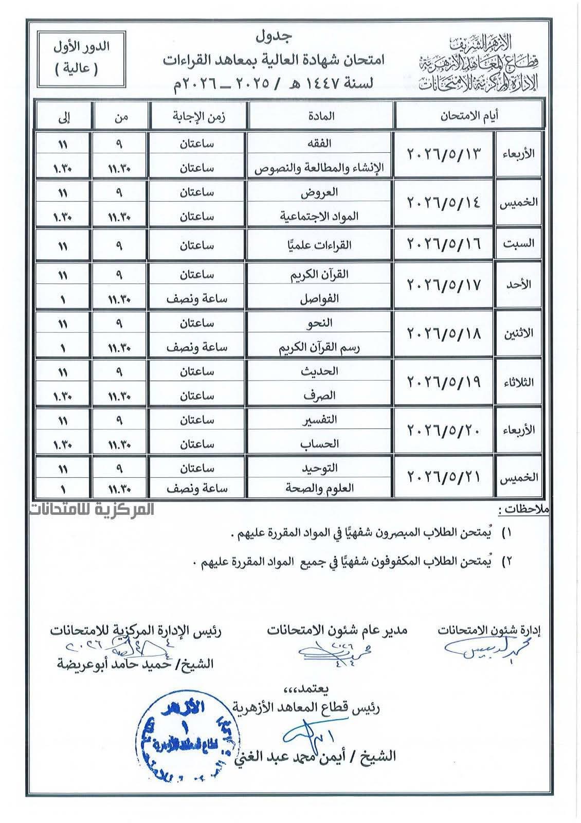 جداول امتحانات النقل والشهادات بقطاع المعاهد الأزهرية (صور)