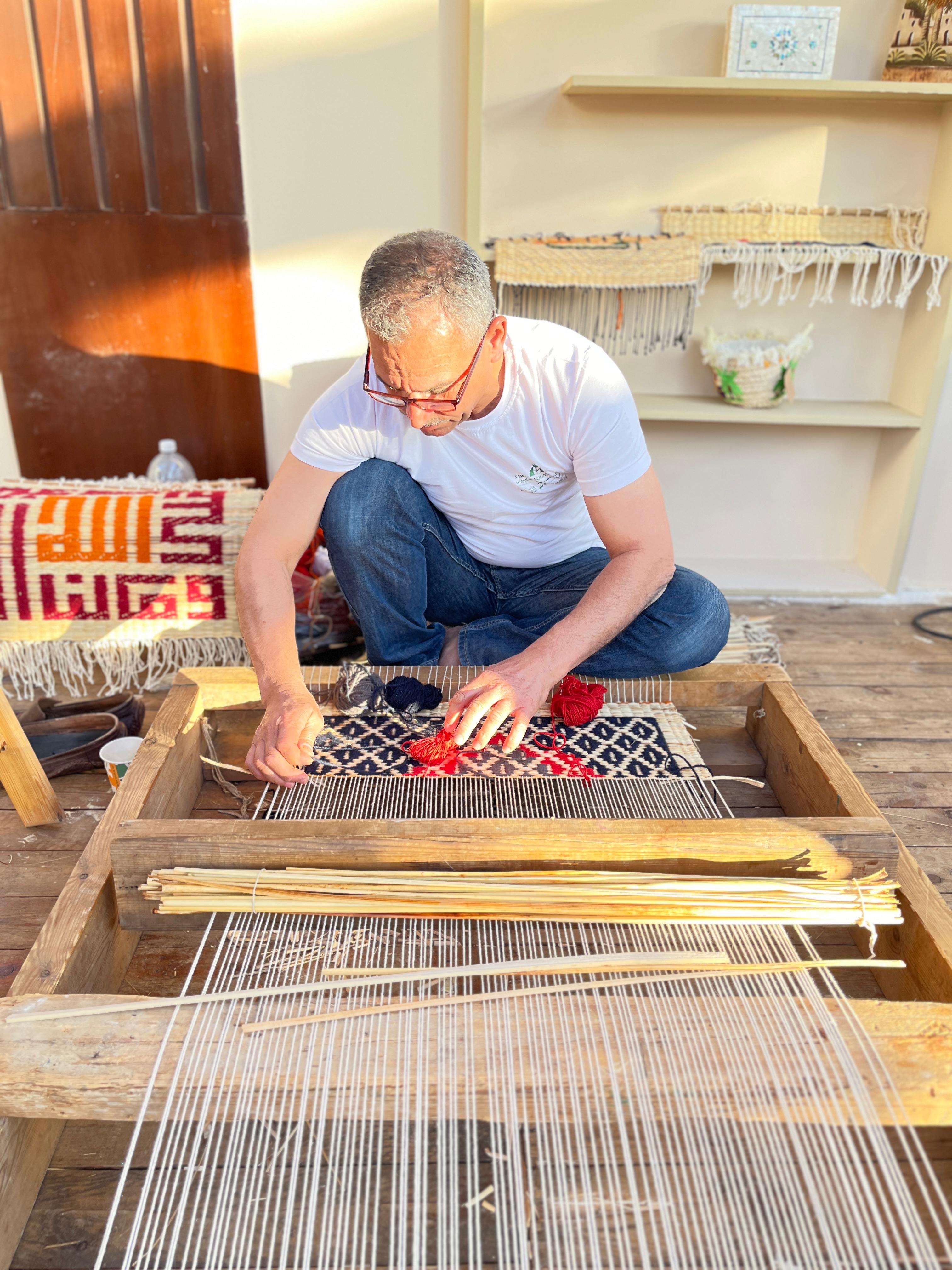 وتبقى المرحلة الأهم في الصناعة هي عملية النسيج، حيث يتم شد الخيوط على النول اليدوي، ويبدأ الحرفي في تركيب الأعواد بشكل دقيق ومتناسق حتى تخرج الحصيرة في شكلها النهائي.