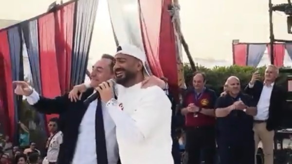 تامر حسني يمازح جمهوره: “دويتو قريب مع السفير الفرنسي” بعد موقف طريف على المسرح
