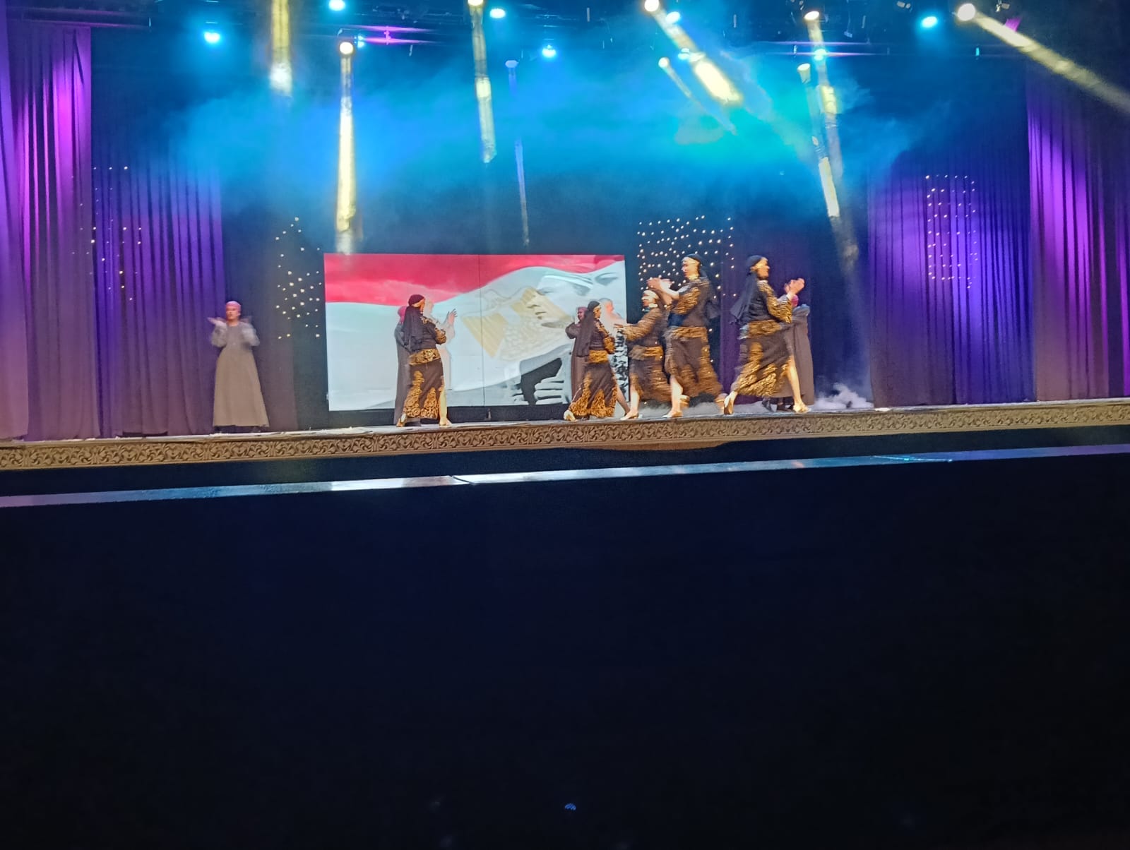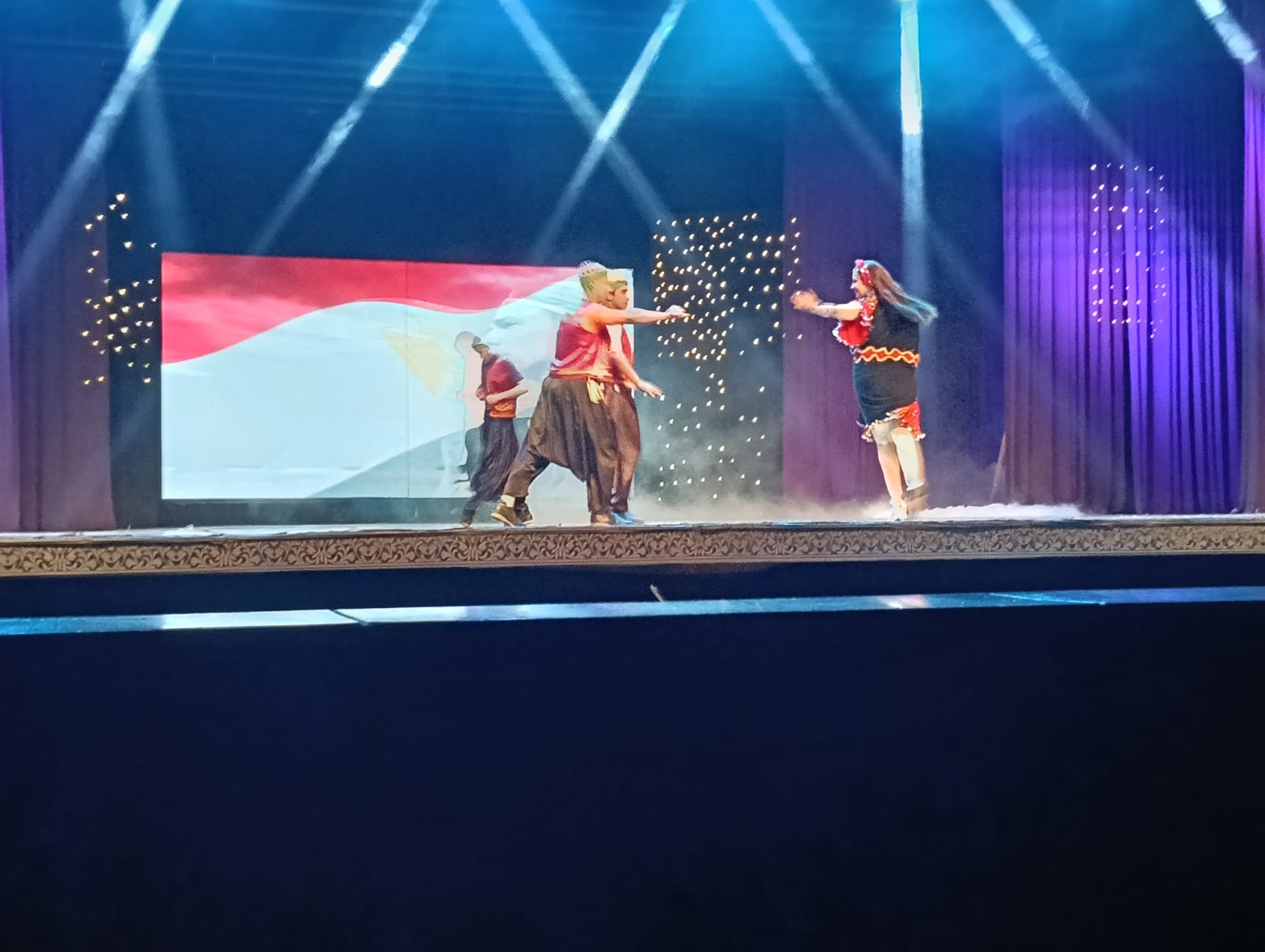 كما شارك أطفال مدرسة الفرقة القومية للفنون الشعبية باستعراض “وطن”، الذي نال إعجاب الجمهور لما حمله من طاقة وحماس ورسائل وطنية صادقة. وشاركت أيضًا فرقة أنغام الشباب “شباب لايف تيم” بتقديم ميدلي من الأغاني الوطنية التي أشعلت حماس الحضور.