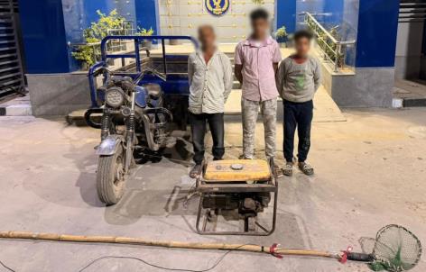 وتمكنت الأجهزة الأمنية من ضبط الأدوات المستخدمة في الواقعة، والتي شملت مركبة “تروسيكل”، ومولد كهربائي، وسنارة موصلة بسلك كهربائي.